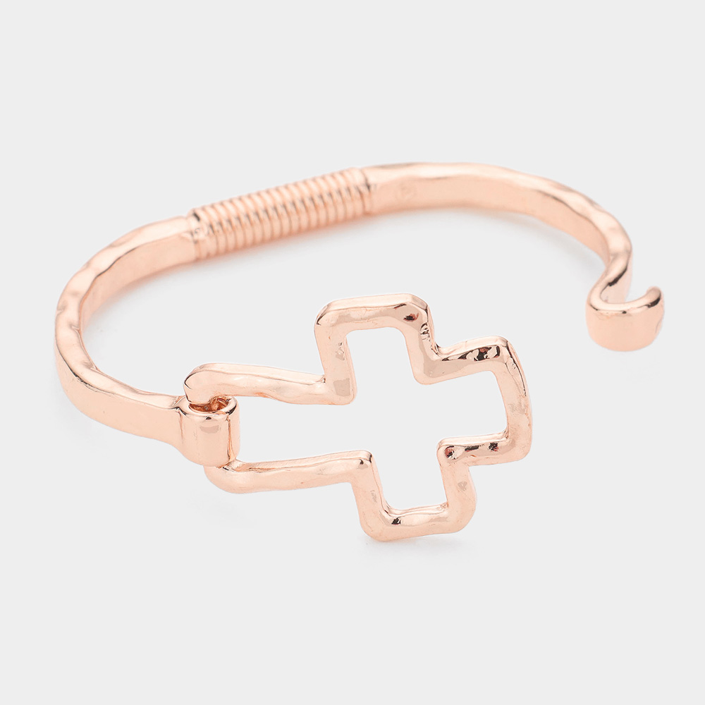 Hammered Open Metal Cross Hook Bracelet Hammered Open Metal Cross Hook Bracelet