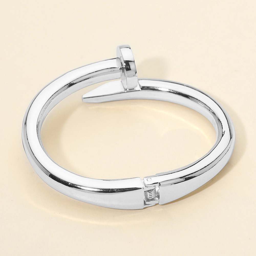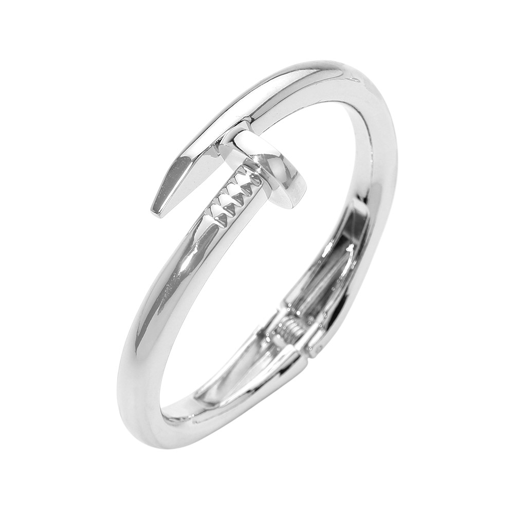 Details • Size : 0.8" H, 2.4" D • Hinged Closure • Statement nail inspired bracelet featuring a sleek open hinge design with sculptural curves. Modern and fashion forward, this bracelet adds an edgy yet refined accent to everyday outfits, workwear styling, and trend driven accessory collections. • Lead and Nickel Compliant