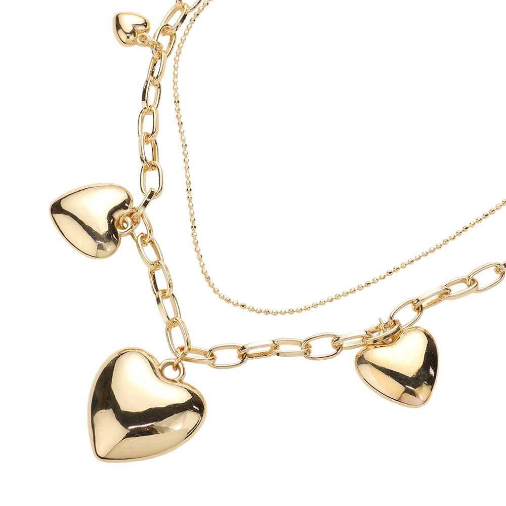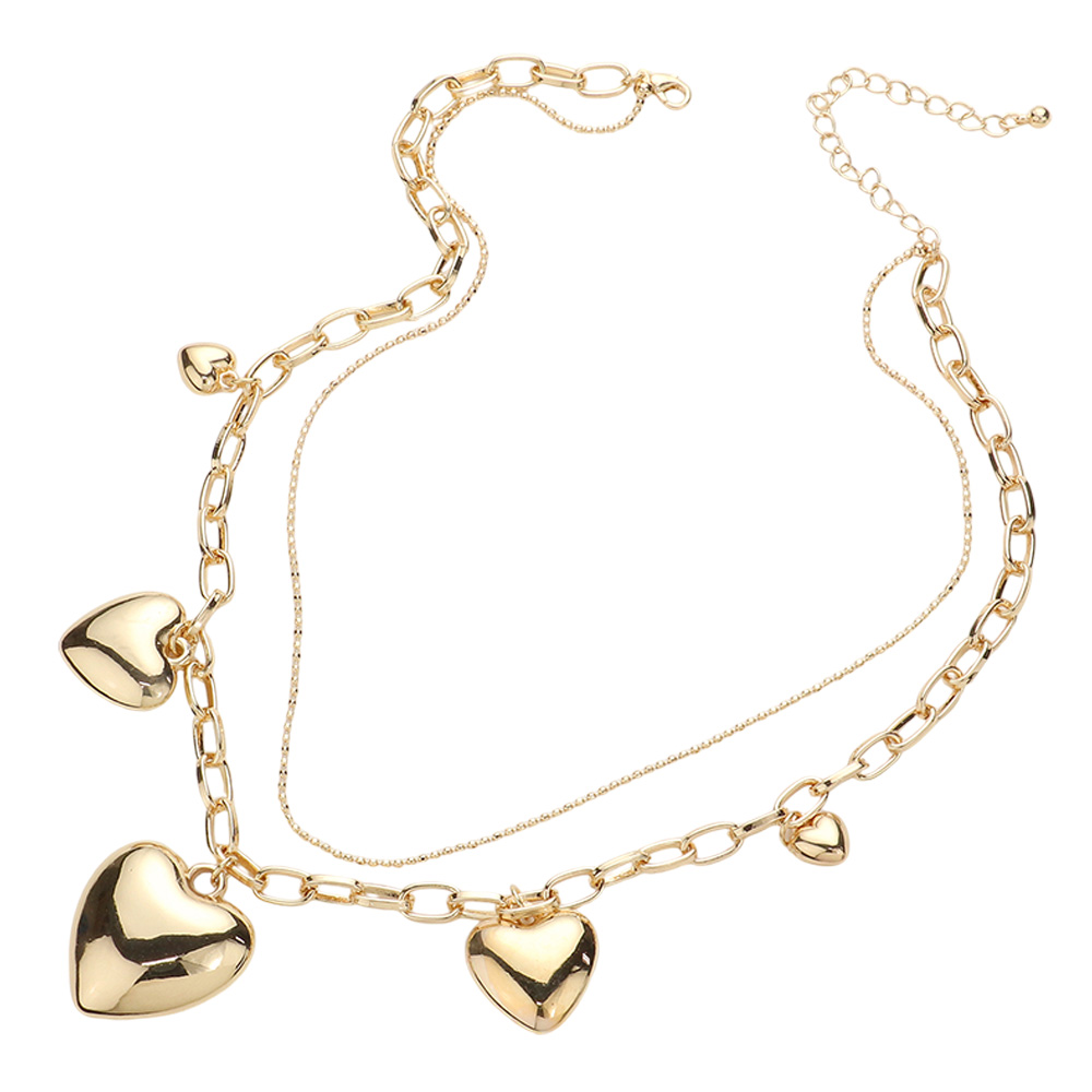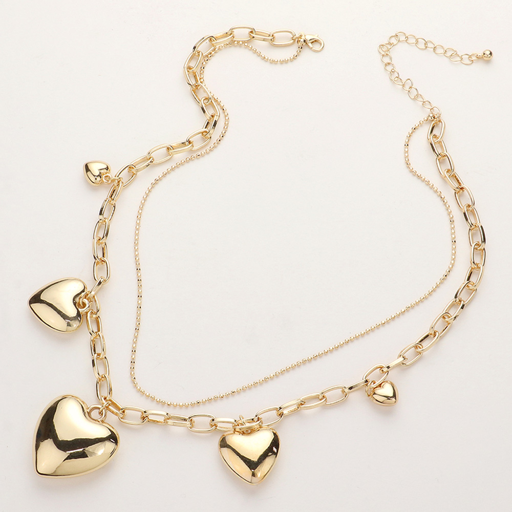 SECRET BOX_Metal Heart Charm Station Paper Clip Chain Layered Necklace