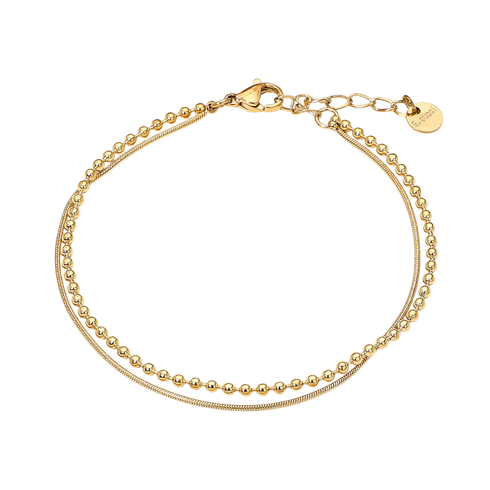 Details • Size : 0.2" H, 7" + 1.5" L • Lobster Clasp Closure • Water Resistant • This dual chain bracelet set combines a sleek snake chain with a classic beaded strand for a stylish layered effect. Lightweight and versatile, it adds refined elegance to everyday wear or special occasions, making it a must-have piece for effortless accessorizing. • Stainless Steel