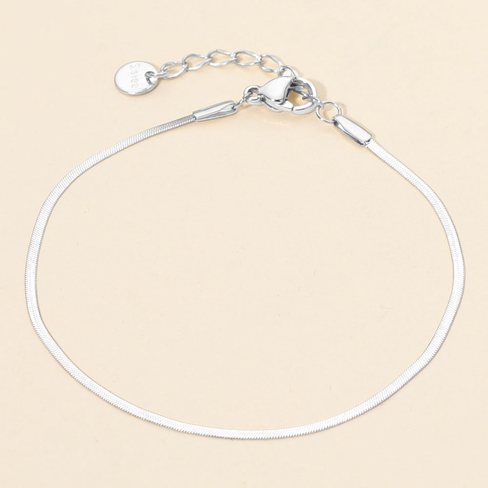 • Sleek flat chain bracelet designed with a smooth, streamlined profile for effortless everyday styling. Its minimalist silhouette layers easily with other pieces or stands alone for a refined look, making it ideal for stacking, gifting, and versatile fashion jewelry collections.