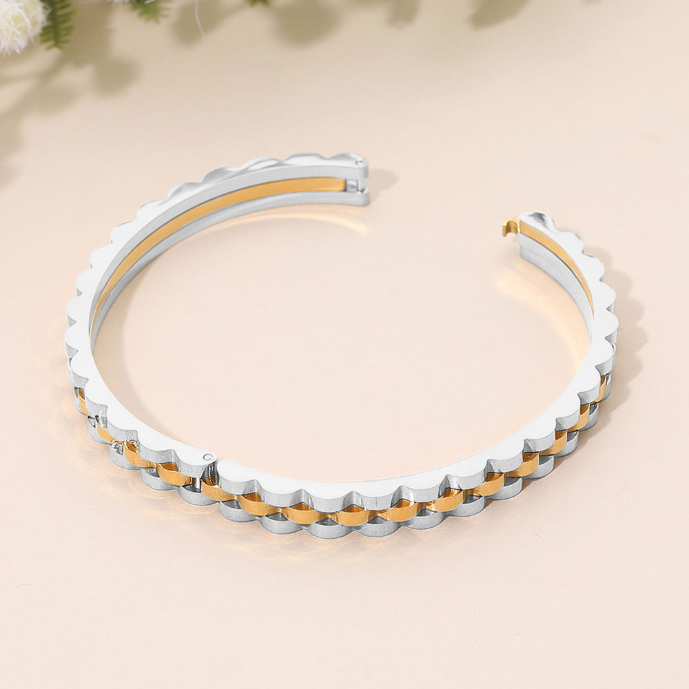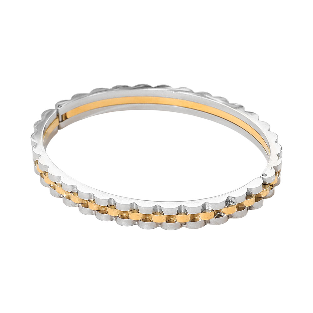 SECRET BOX_Stainless Steel Textured Chain Link Hinged Bangle Bracelet