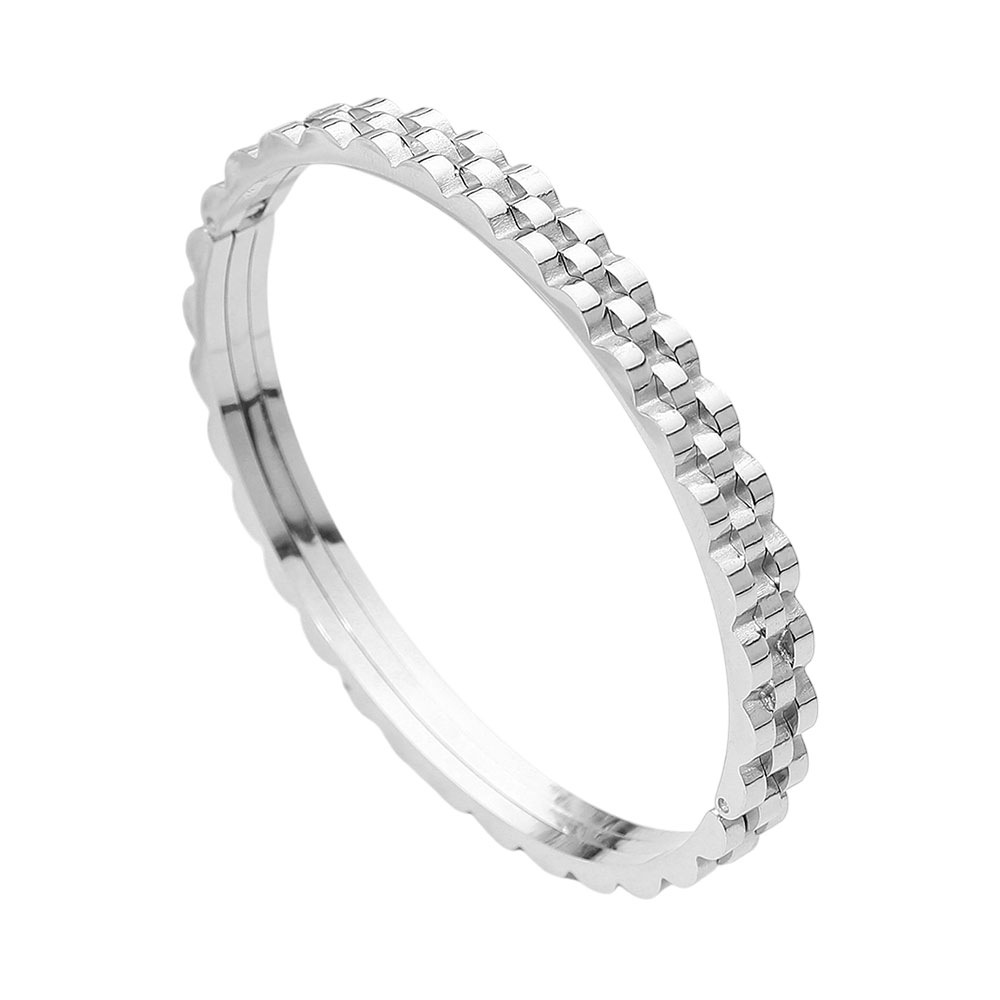 SECRET BOX_Stainless Steel Textured Chain Link Hinged Bangle Bracelet