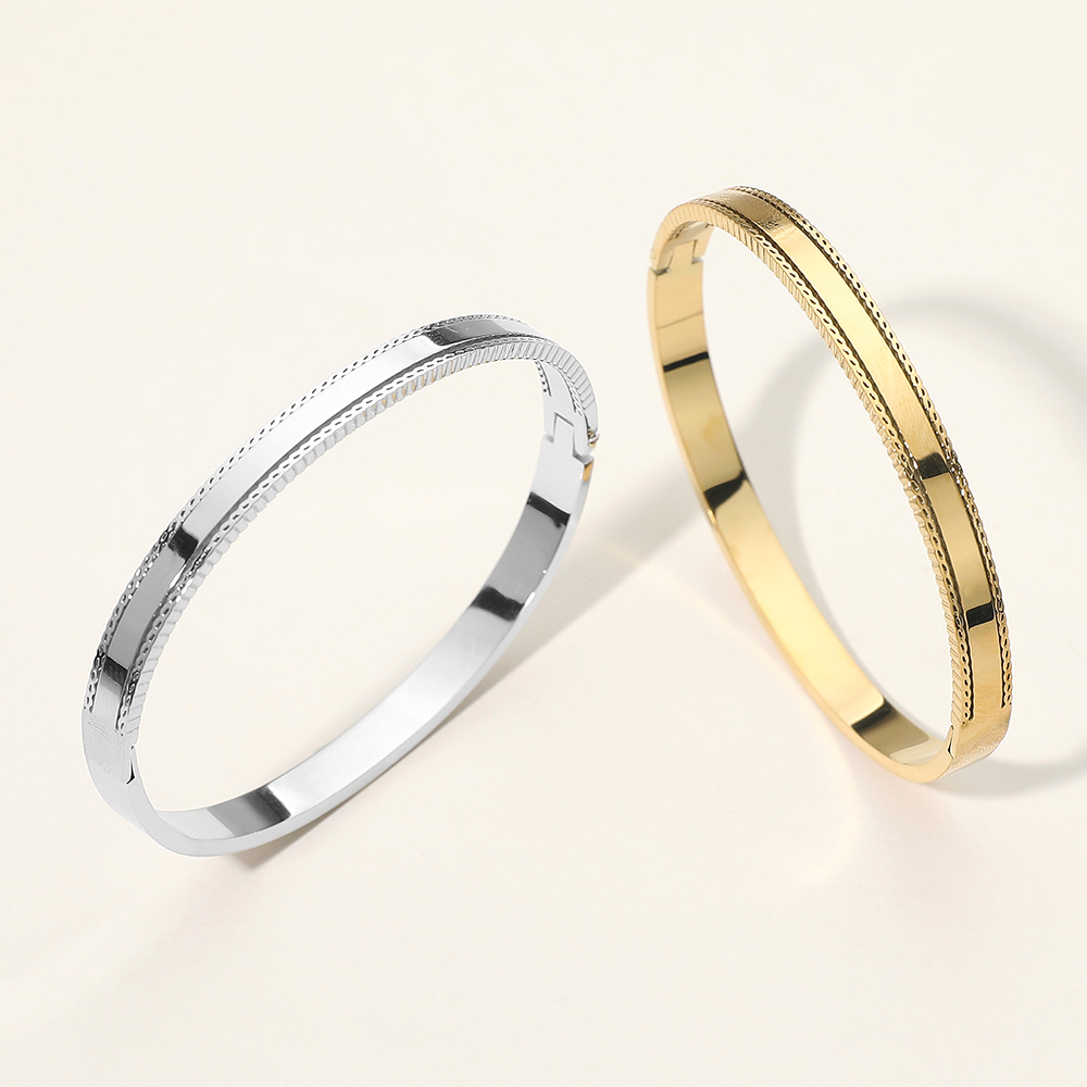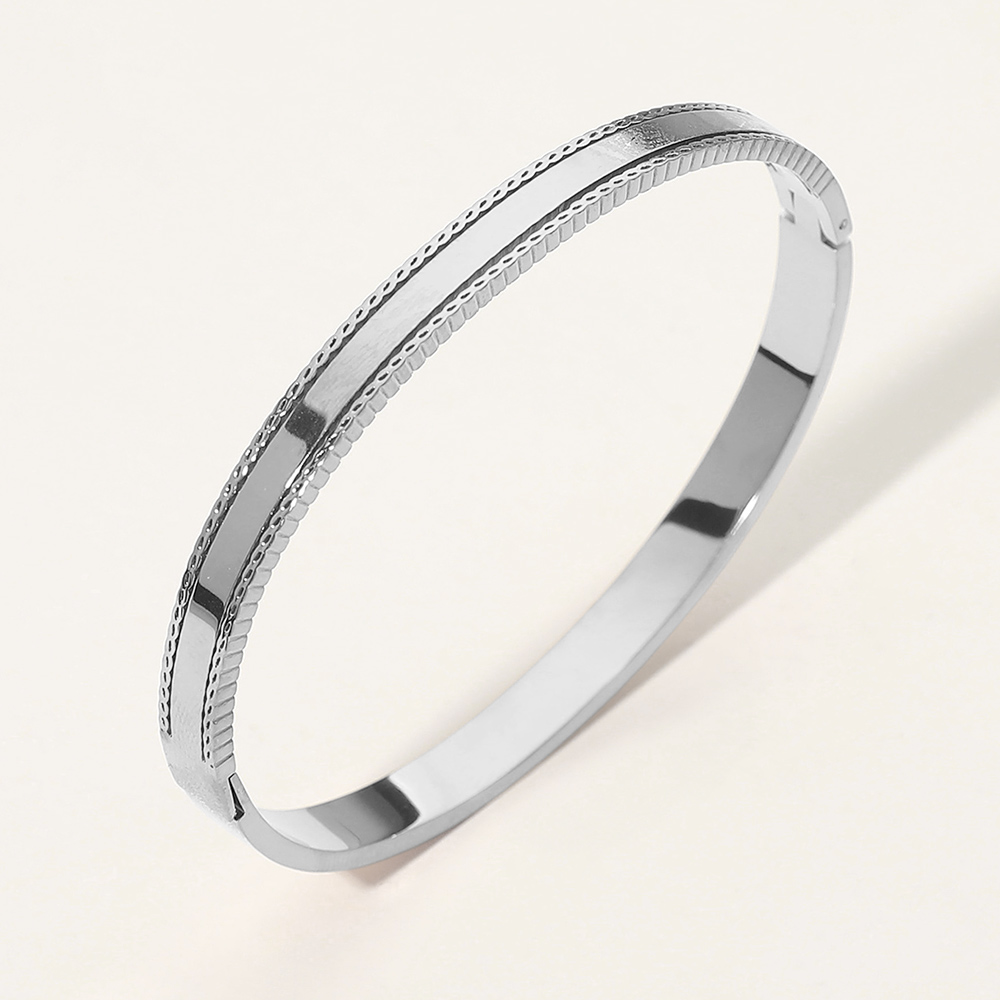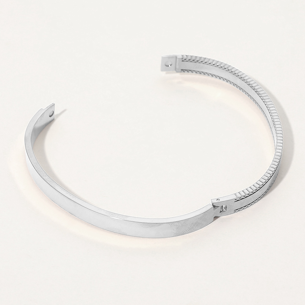 SECRET BOX_Stainless Steel Textured Hinged Bangle Bracelet