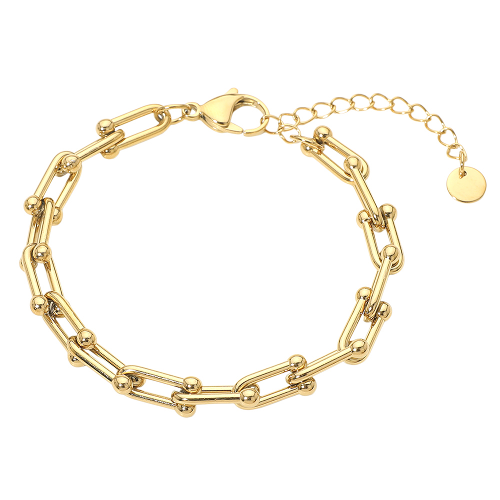 Details • Size : 0.3" H, 7.5" + 2.25" L • Lobster Clasp Closure • This stainless steel industrial link chain bracelet features a sleek, structured design accented with subtle rounded details for added dimension. Designed for everyday wear, it offers a refined statement that pairs effortlessly with casual or elevated looks. Perfect for stacking or wearing solo, it brings a clean, contemporary touch to any jewelry assortment. • Stainless Steel