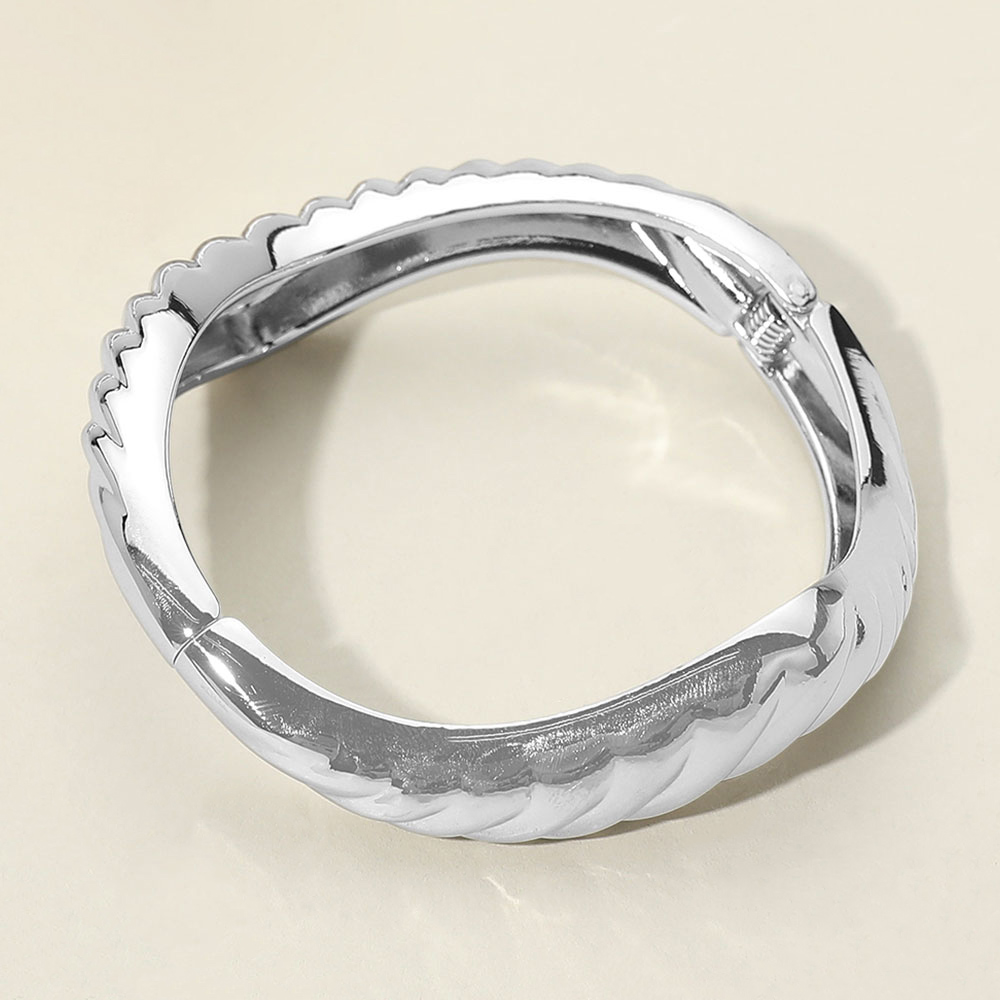 Details • Size : 0.75" H, 2.4" D • Hinged Closure • Sculpted bangle bracelet featuring a bold textured surface and secure hinge closure for comfortable wear. Designed to add dimension and refined edge, this statement bracelet works effortlessly for stacking or wearing solo in fashion-forward accessory collections. • Lead and Nickel Compliant