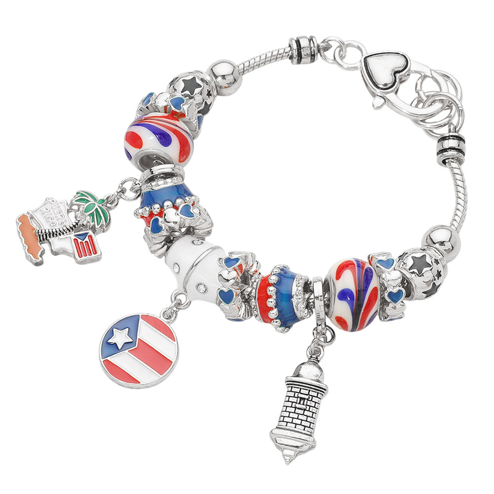 Puerto Rico Flag Charm Multi-Bead Bracelet Puerto Rico Flag Charm Multi-Bead Bracelet