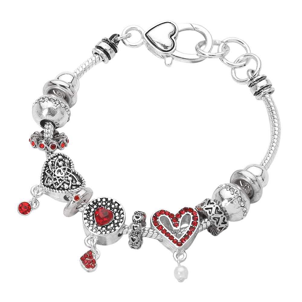 Rhinestone Embellished Heart Multi Bead Bracelet