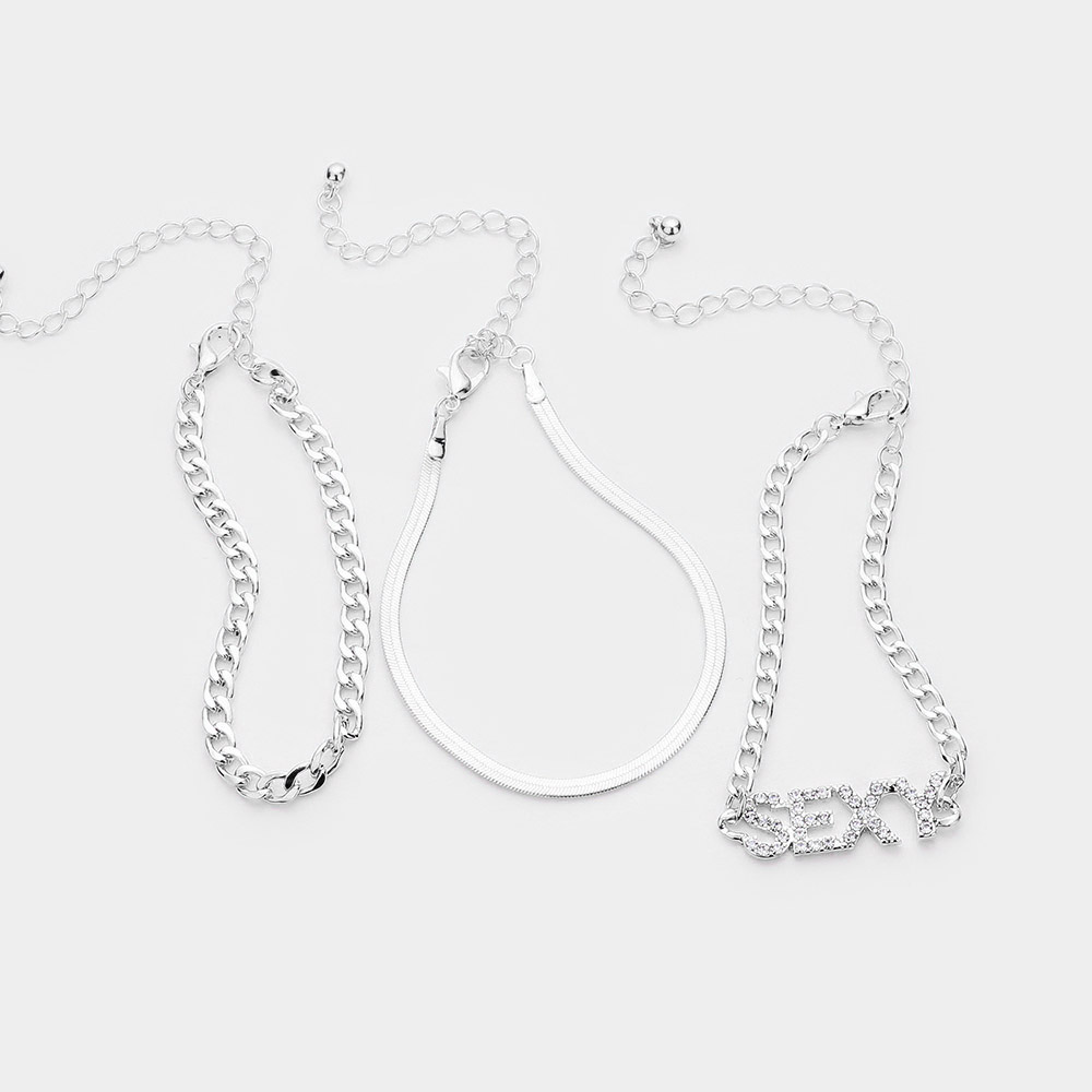 3PCS - SEXY Rhinestone Embellished Metal Chain Bracelets