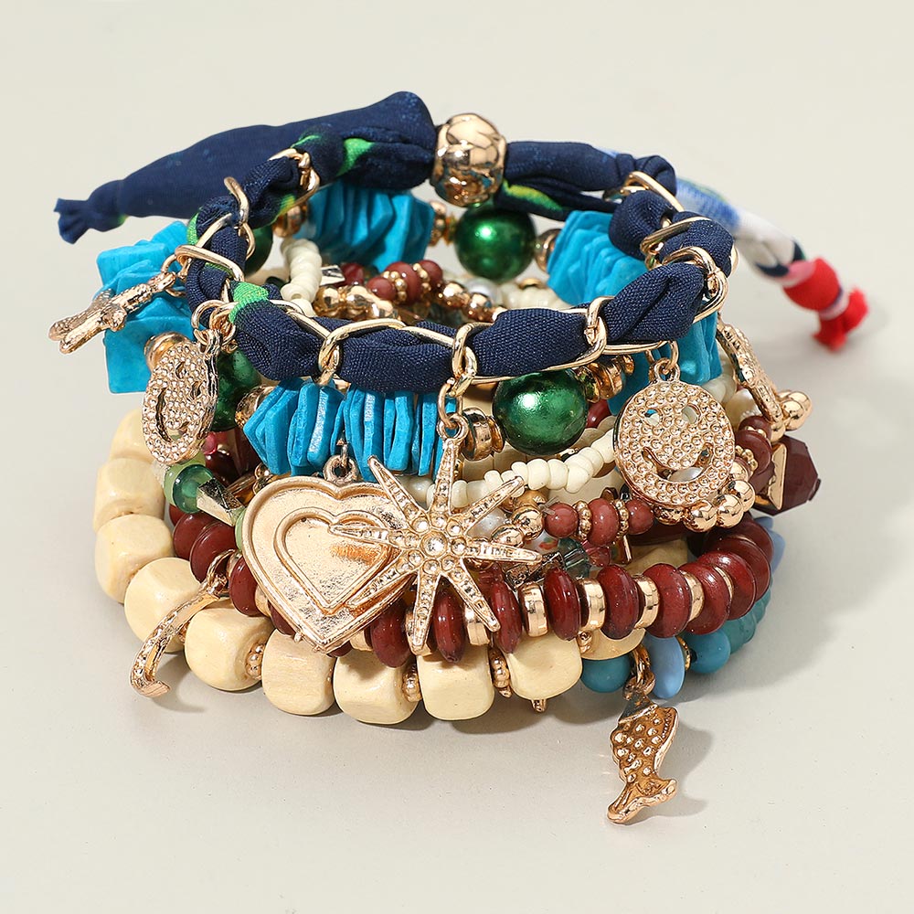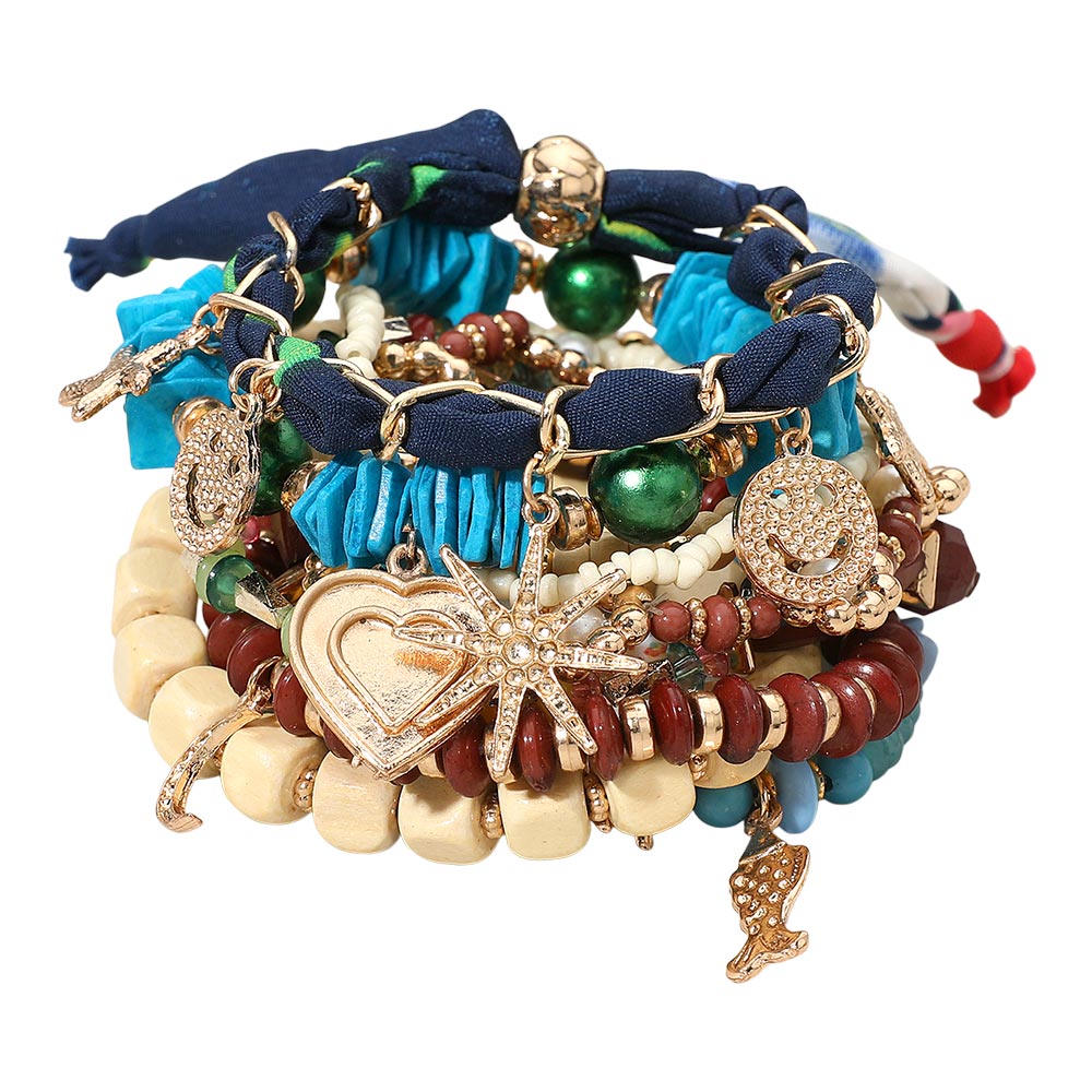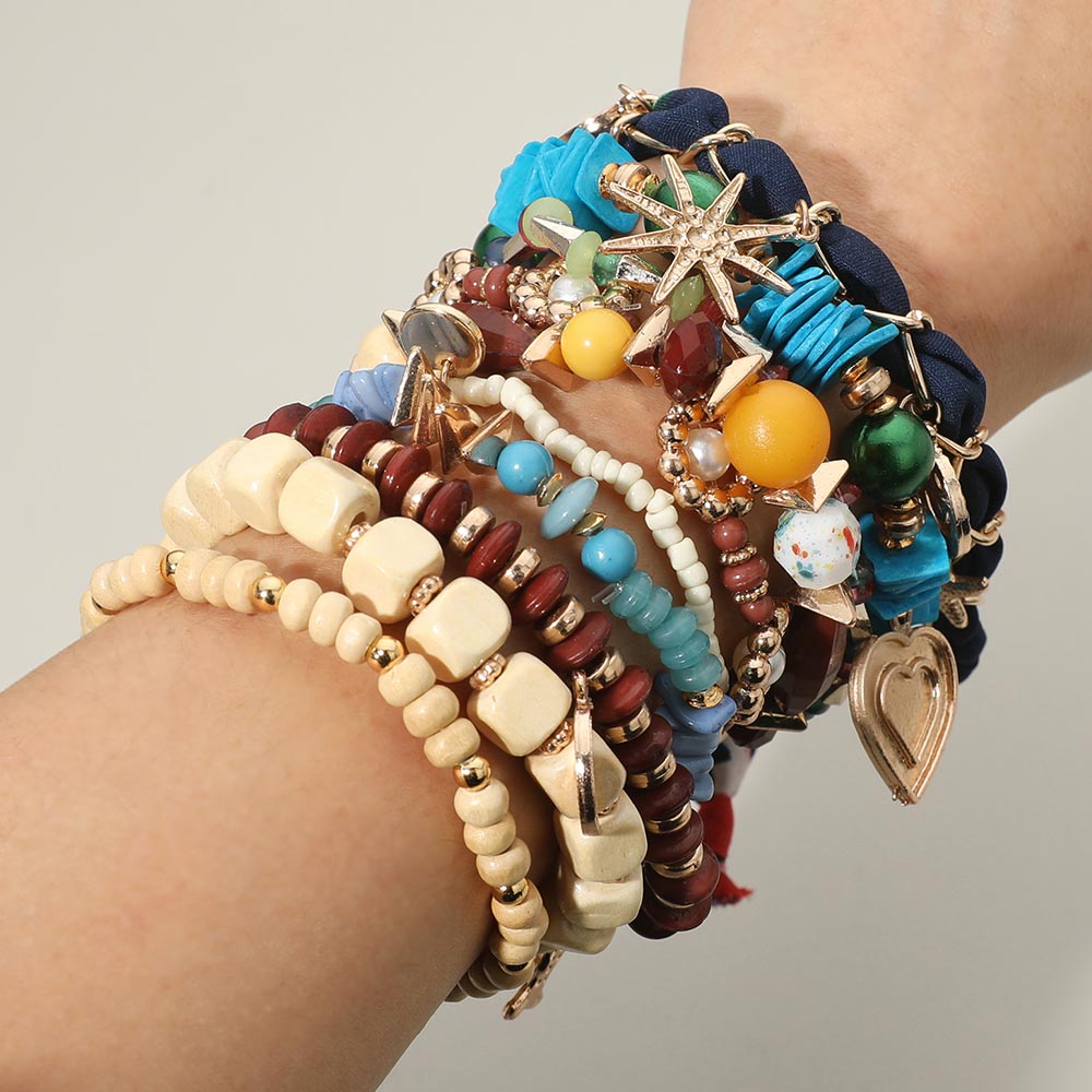 Details • Size 1 : 2" H / Stretchable • Size 2 : 0.4" H / Adjustable • A vibrant multi-piece bracelet set featuring mixed beads, sculpted charms, and artistic woven accents. Each piece offers expressive detail and varied textures, creating a playful stacked look ideal for adding personality and movement to any style. • Lead and Nickel Compliant • Made In India