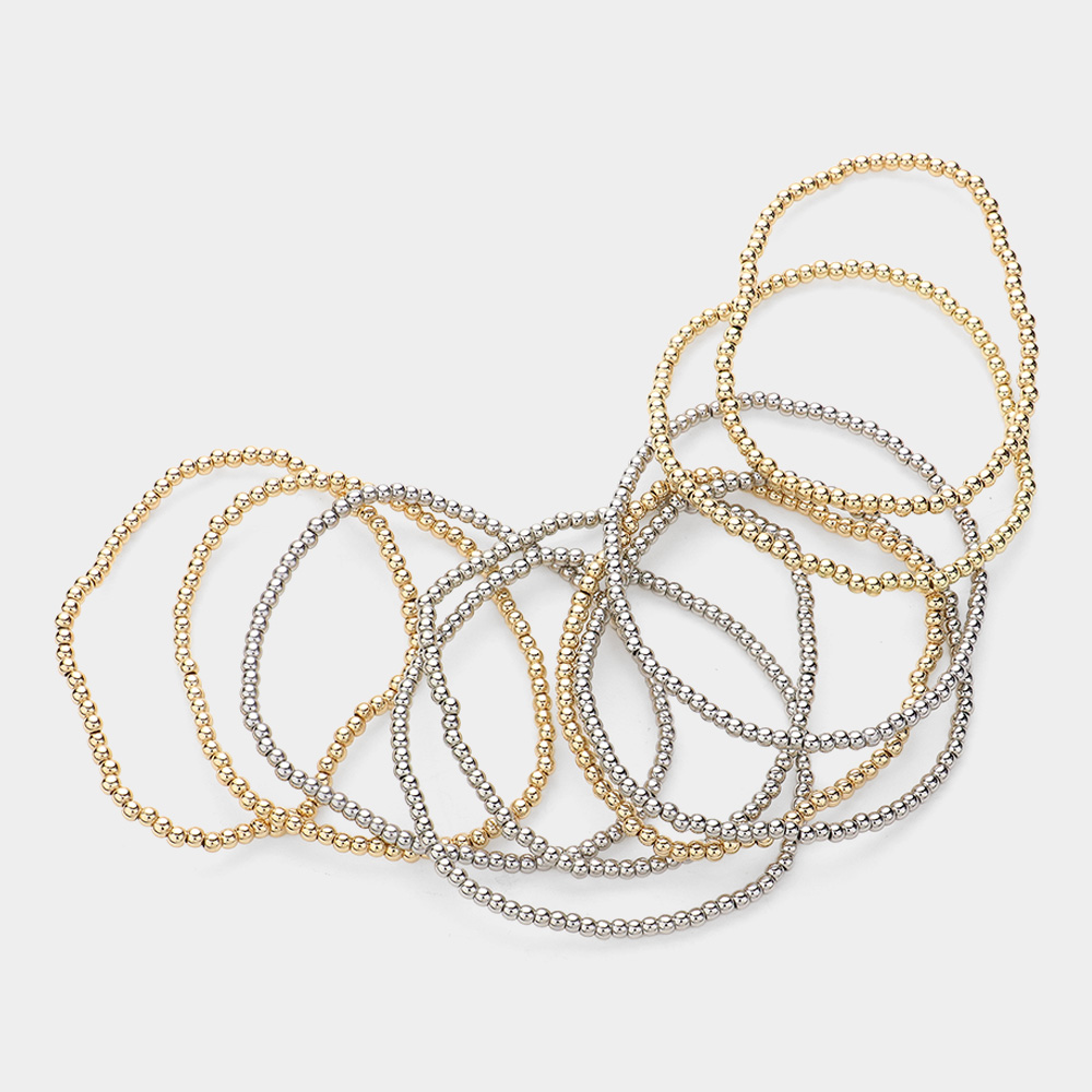 10PCS - Metal Ball Stretch Multi Layered Bracelets