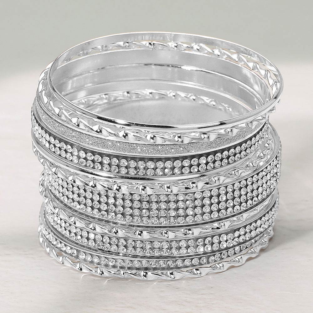 • Make a bold statement with this Rhinestone Embellished Bangle Set, featuring a mix of textured and crystal-studded designs. Perfect for stacking or wearing individually, this set brings a touch of glamour and sophistication to any look, from casual wear to elegant occasions.