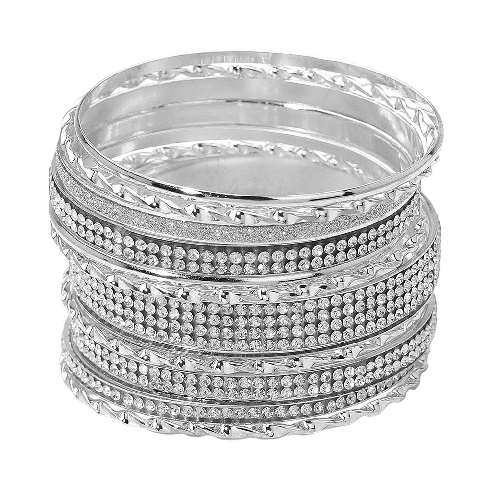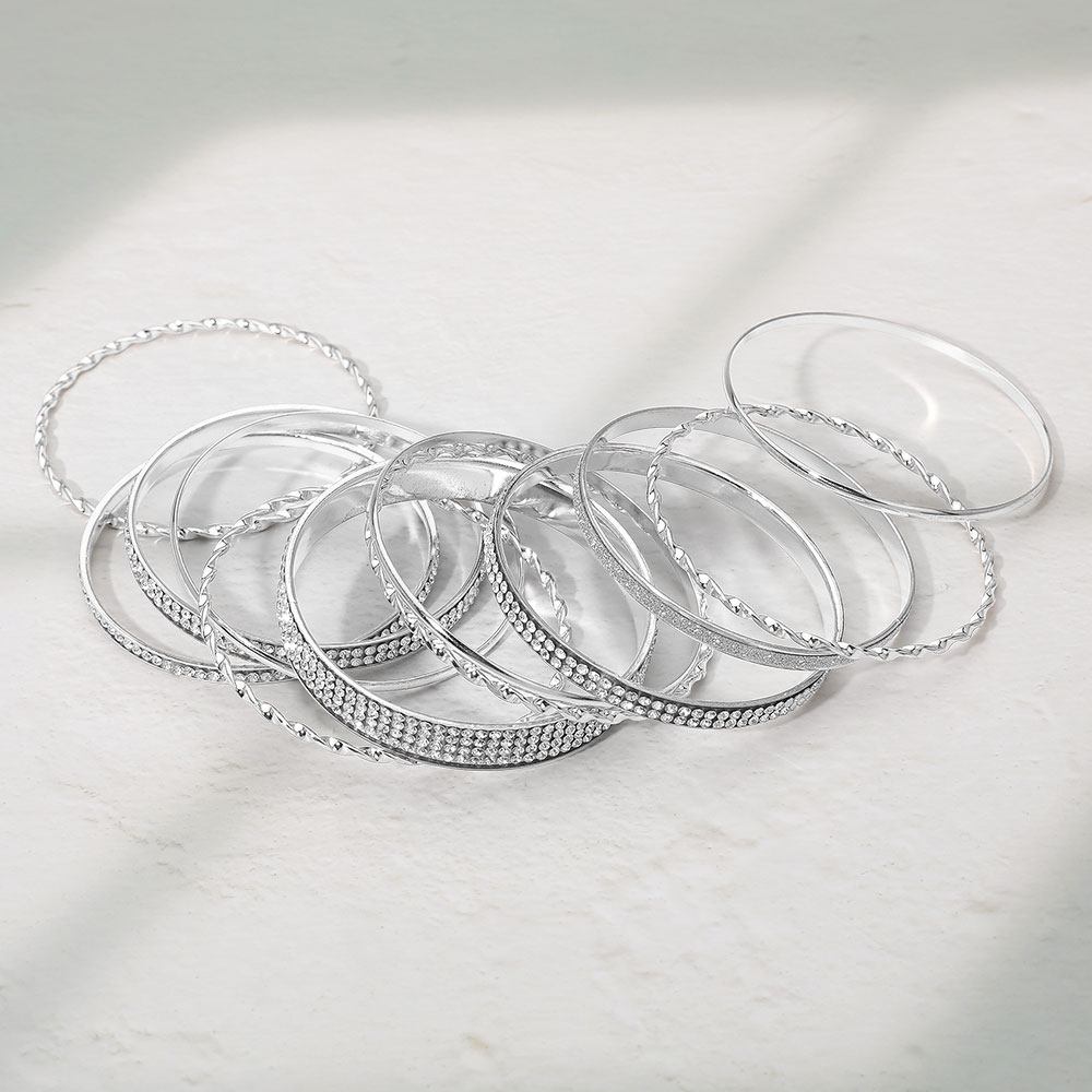 12PCS - Rhinestone Embellished Multi Layered Bangle Bracelets