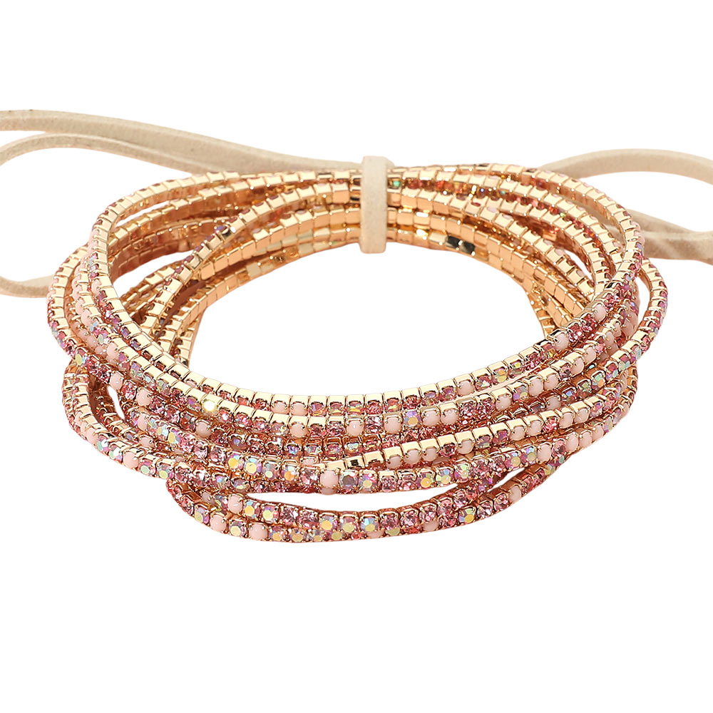 12PCS - Ribbon Colorful Rhinestone Layered Stretch Bracelets