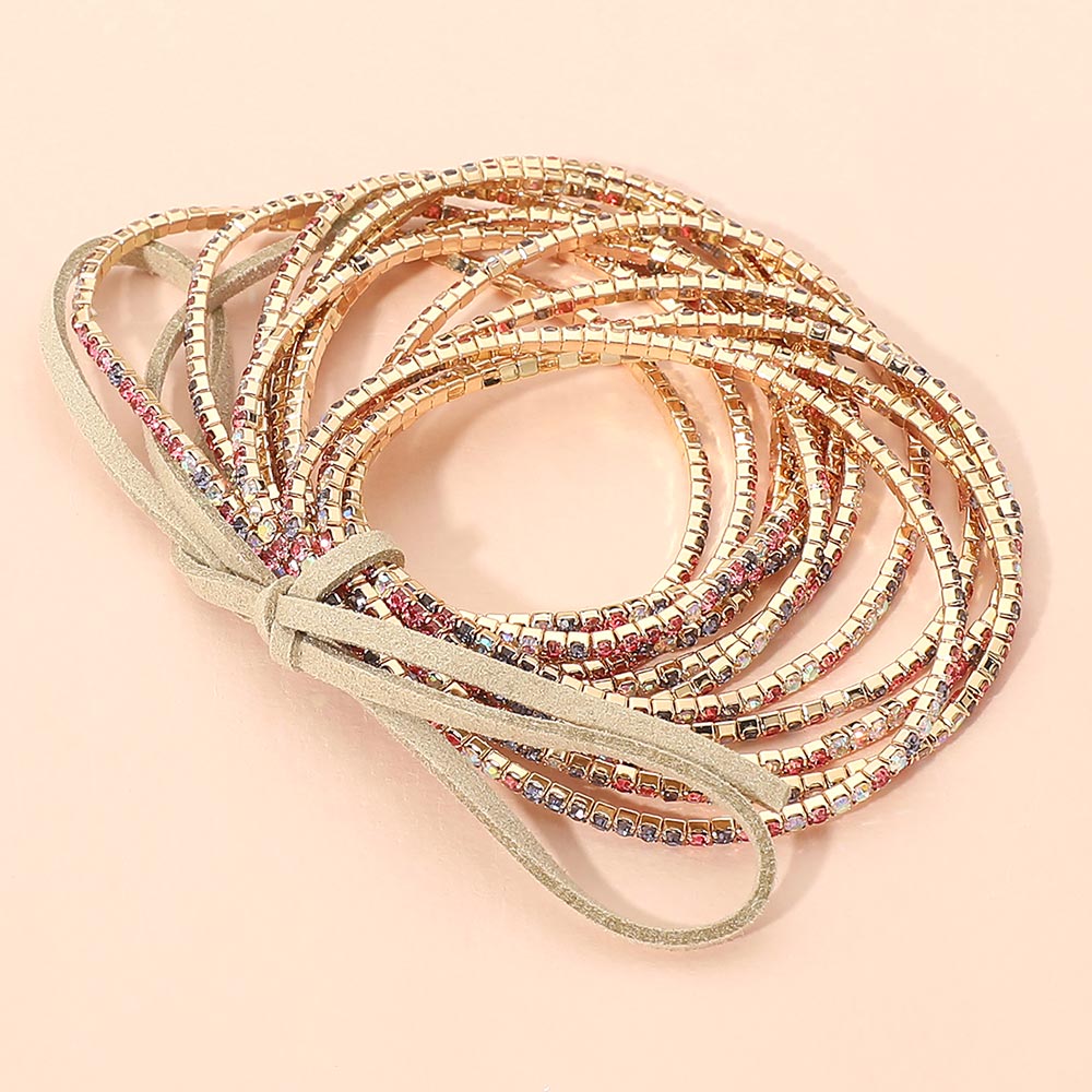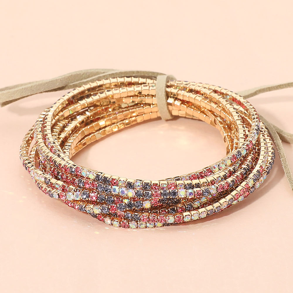 12PCS - Ribbon Colorful Rhinestone Layered Stretch Bracelets