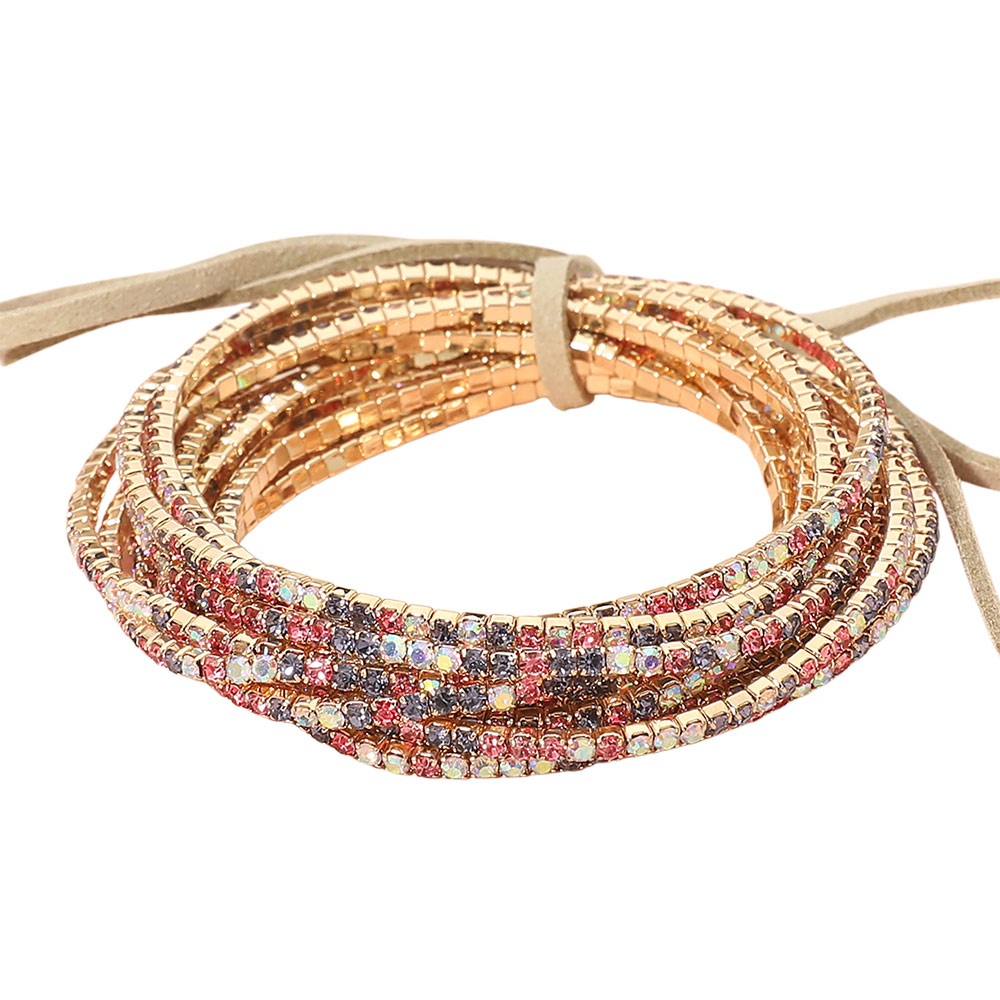 • Colorful wrap bracelet featuring multiple strands with shimmering bead accents and an adjustable tie closure. A playful accessory perfect for casual and festive looks.