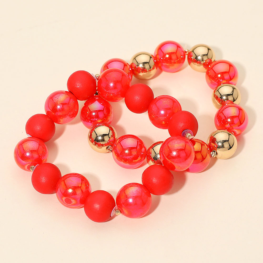 2PCS - Chunky Ball Beaded Stretch Multi Layered Bracelets