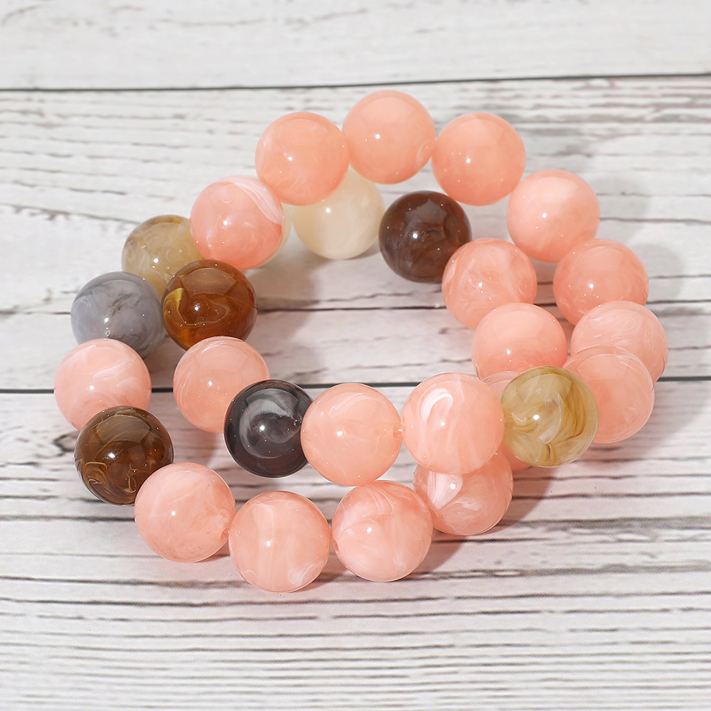 2PCS - Chunky Marbled Resin Ball Beaded Stretch Multi Layered Bracelets