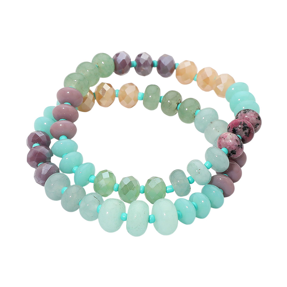 2PCS - Faceted Pebble Beaded Stretch Multi Layered Bracelets 2PCS - Faceted Pebble Beaded Stretch Multi Layered Bracelets 2PCS - Faceted Pebble Beaded Stretch Multi Layered Bracelets