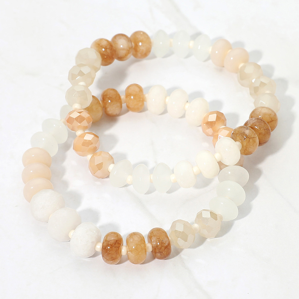 Details • Size : 0.7" H • Stretchable • This stretch bracelet set features smooth and faceted beads arranged in a balanced mix of shapes and finishes. The versatile design layers effortlessly for everyday style or adds a subtle statement to elevated looks, offering a refined and modern accessory option. • Lead and Nickel Compliant