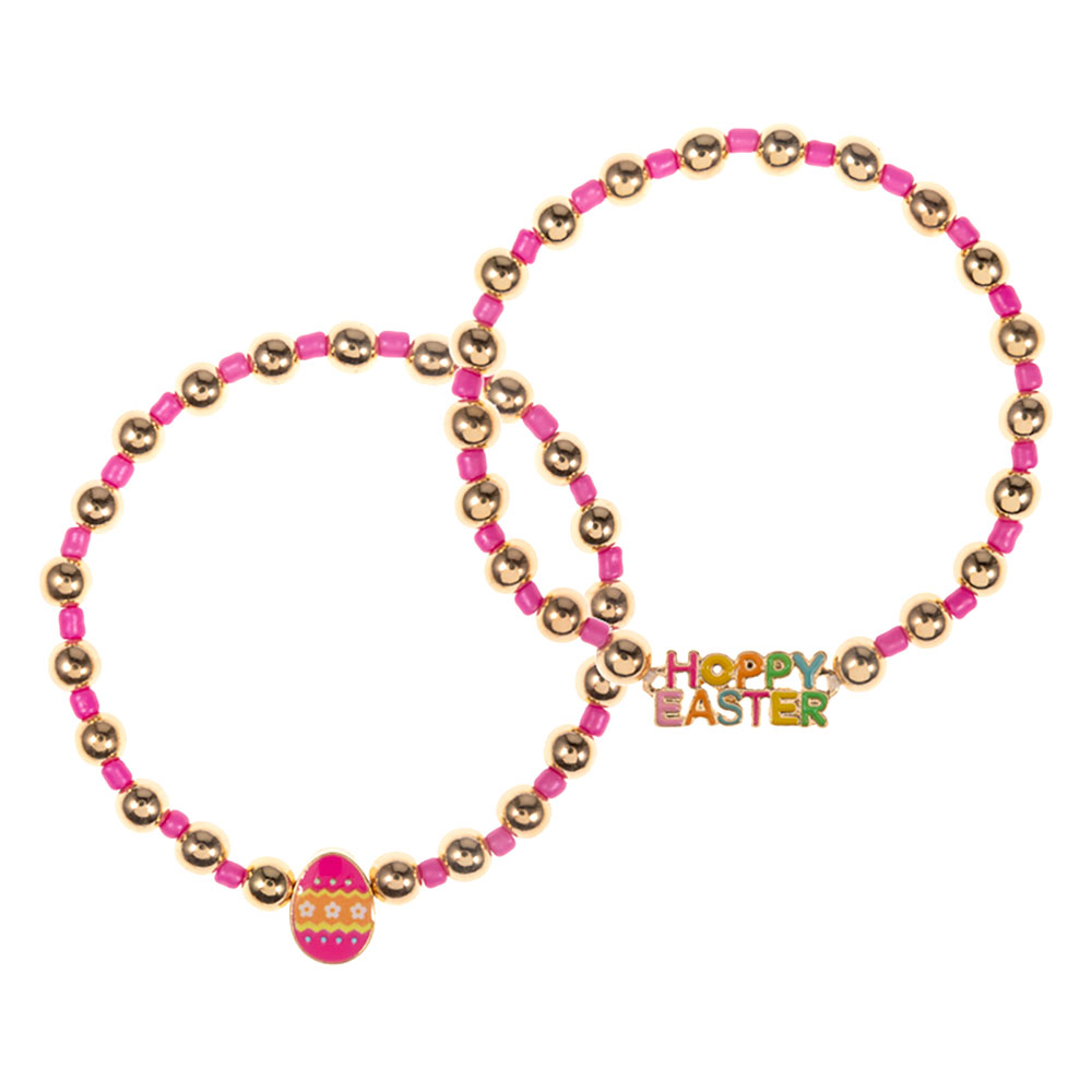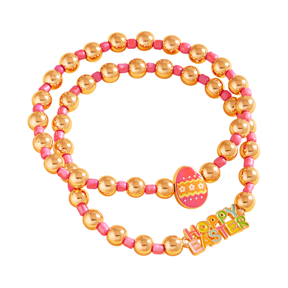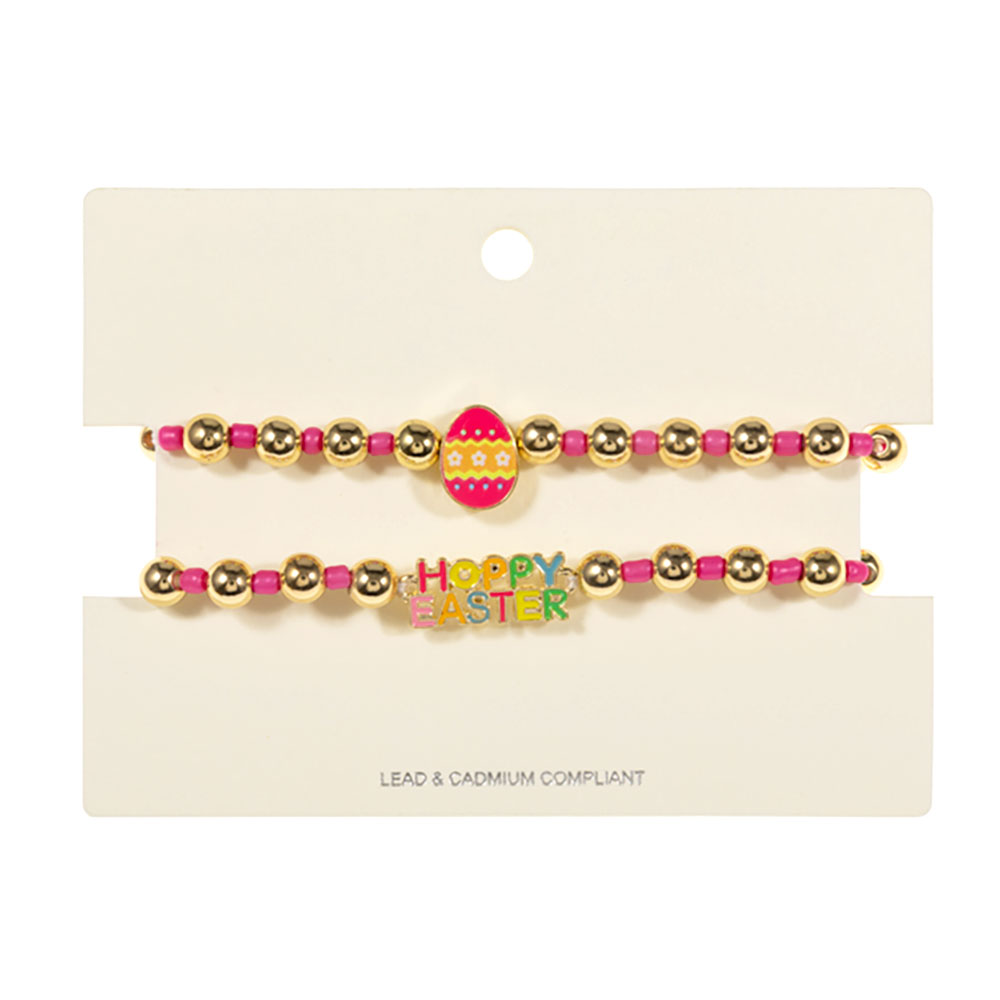 2PCS - HAPPY EASTER Egg Beaded Stretch Multi Layered Bracelets