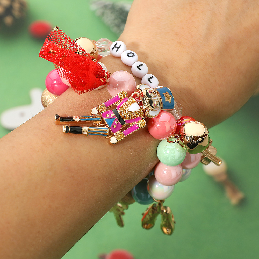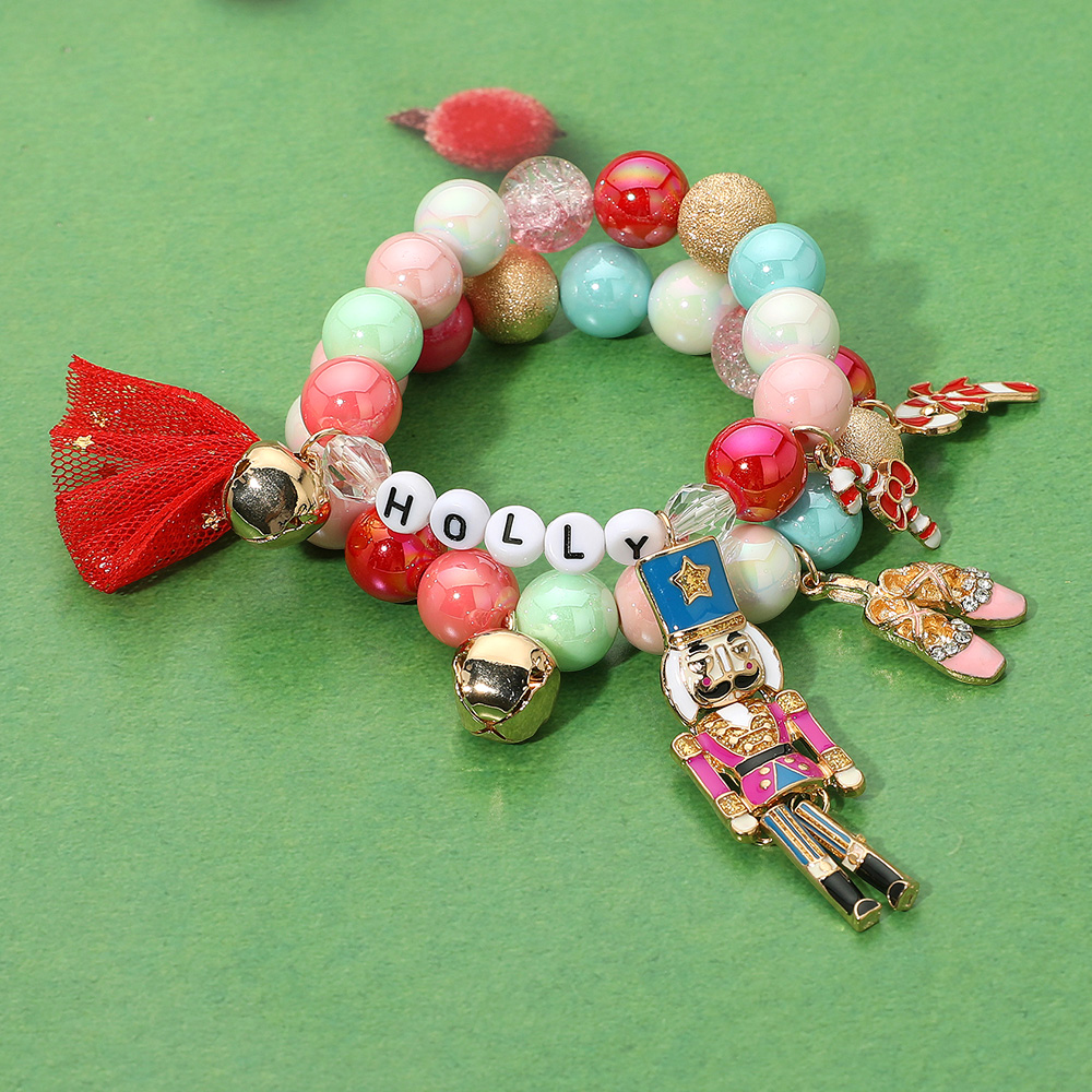 Details • Size : 2.25" H • Stretchable • Celebrate the season with this charming “HOLLY” beaded bracelet set featuring colorful beads, festive Nutcracker and candy cane charms, and a cheerful bow accent. The stretch fit offers comfort and playful elegance, perfect for parties, gifting, or spreading Christmas joy. • Lead and Nickel Compliant