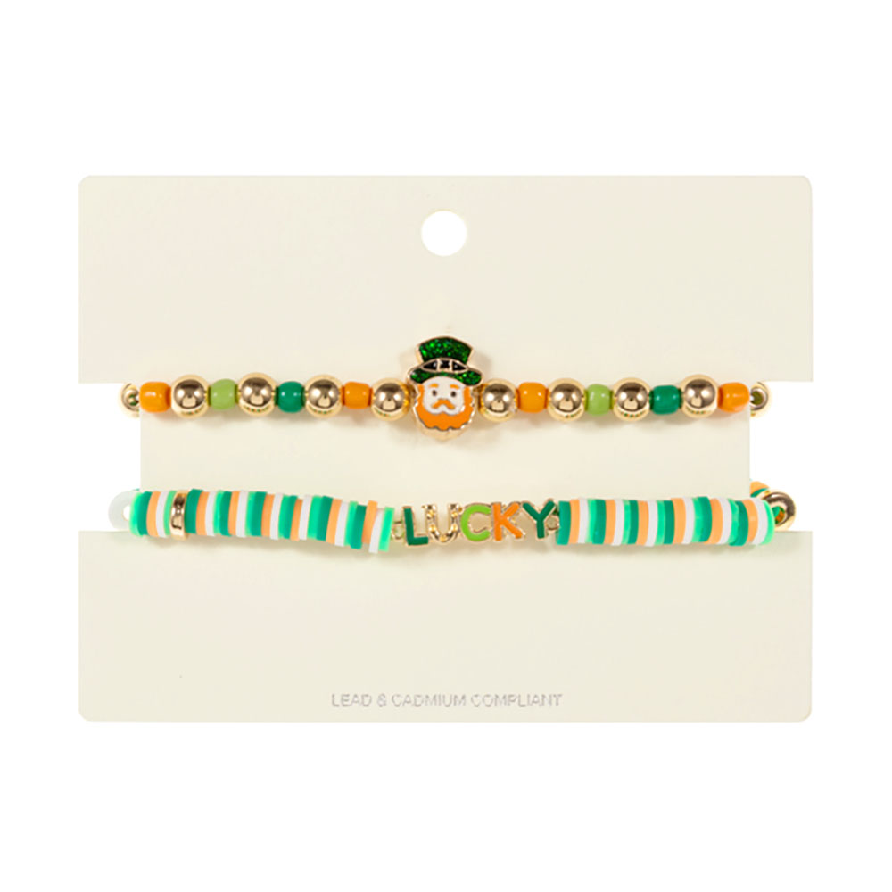 Details • Size : 0.8" H • Stretchable • Two-piece stretchy bracelet set featuring playful charm accents and mixed bead designs for easy stacking or solo wear. Lightweight and comfortable with a flexible fit, perfect for everyday styling, festive outfits, or gifting to add a fun and trendy touch. • Lead and Nickel Compliant