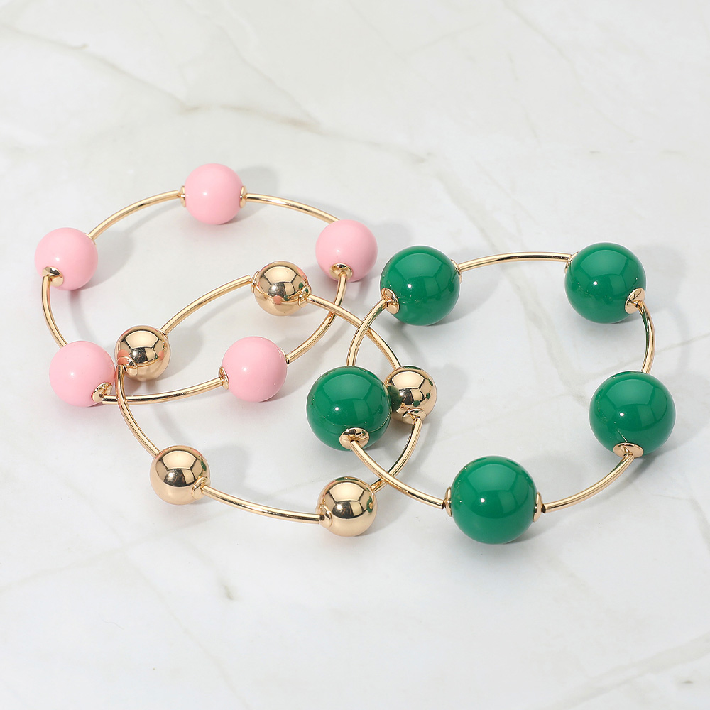 • Trendy bangle bracelet featuring bold round beads arranged on sleek bands for a playful and modern look. A fun statement piece that adds personality and charm to any outfit, perfect for stacking or wearing solo with stylish flair.