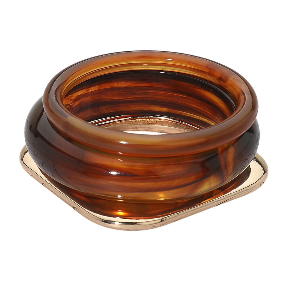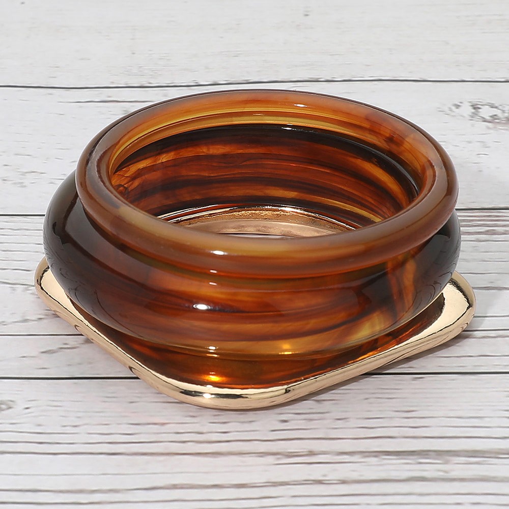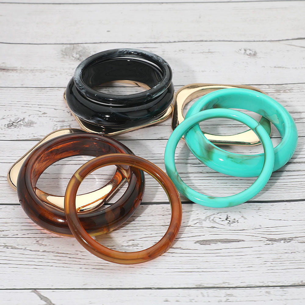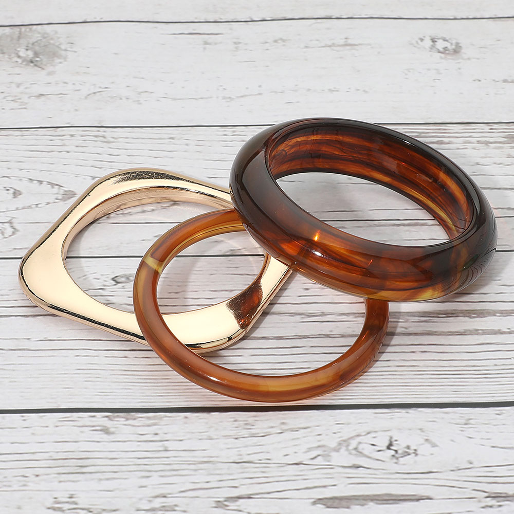 3PCS - Bold Modern Mixed Shape Resin Flat Square Metal Bangle Multi Layered Bracelets