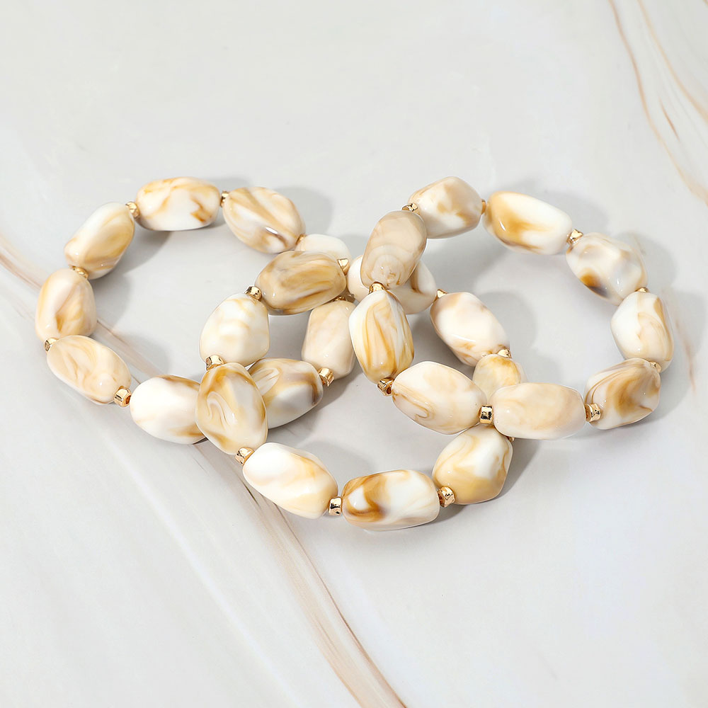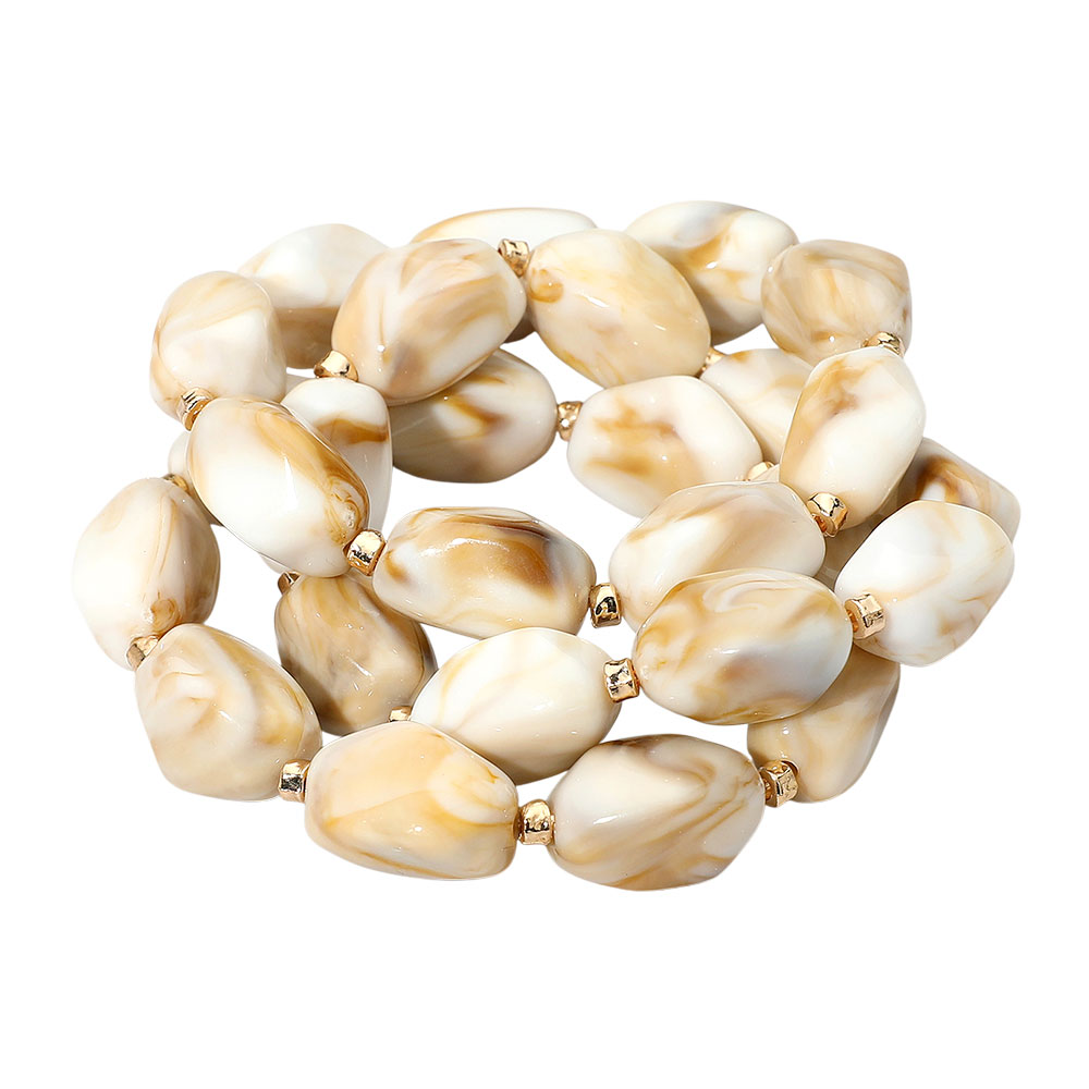 3PCS - Chunky Marbled Pebble Beaded Stretch Multi Layered Bracelets