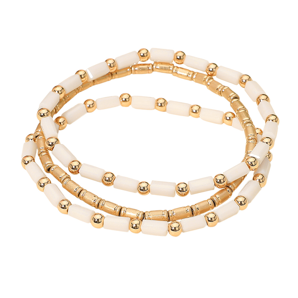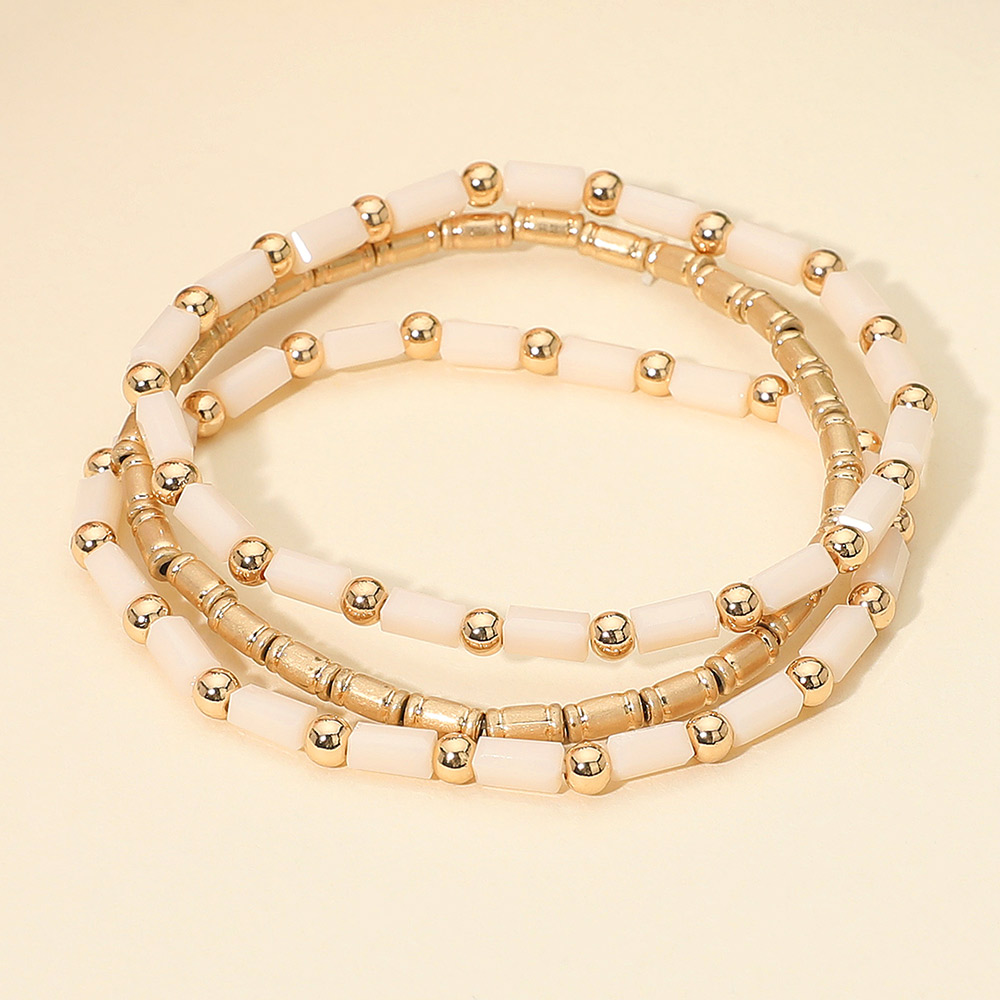 3PCS - Faceted Tube Beaded Stretch Multi Layered Bracelets