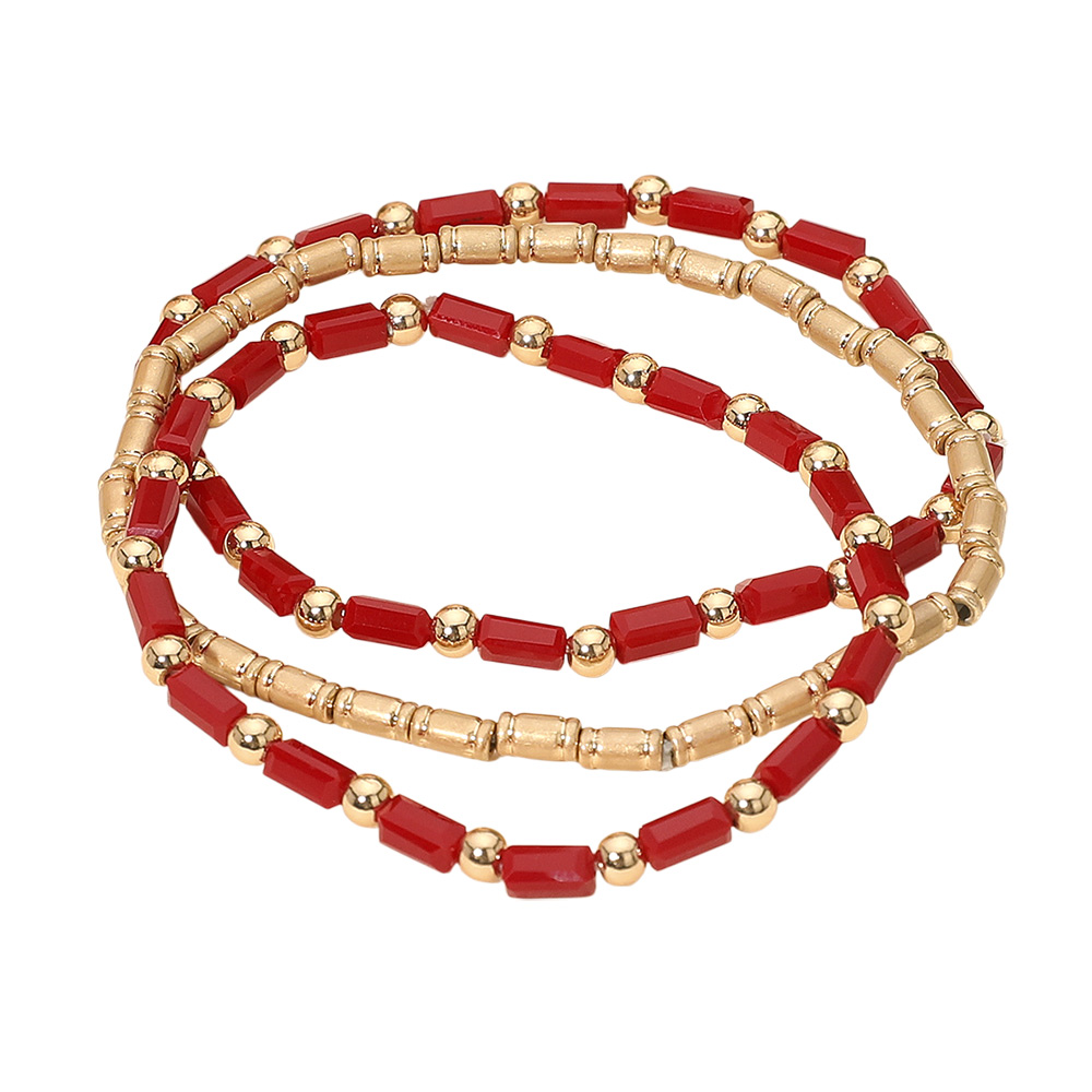 3PCS - Faceted Tube Beaded Stretch Multi Layered Bracelets