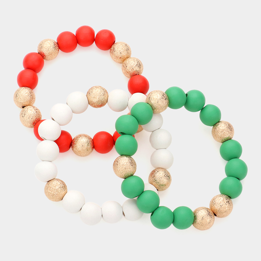 3PCS - Frosted Metal Ball Christmas Beaded Stretch Bracelets