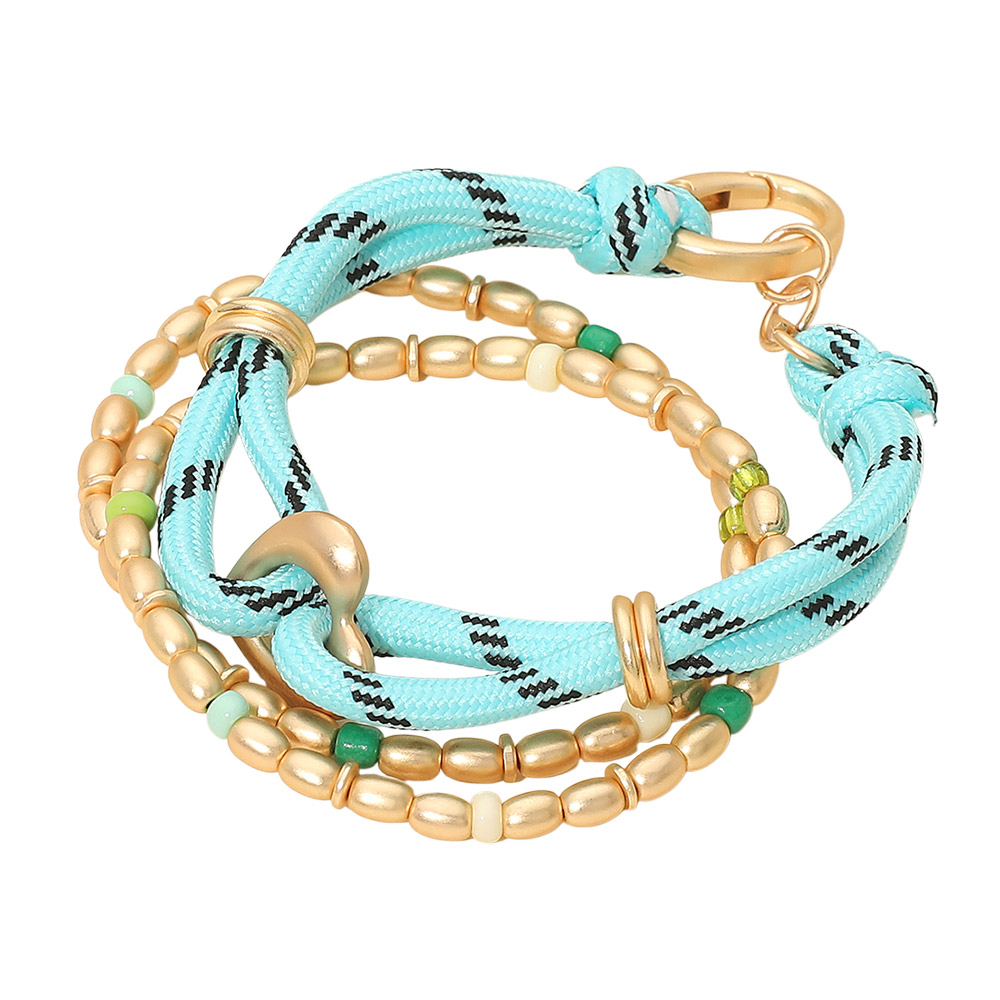 Details • Size 1 : 0.75" H, 8" + 0.75" L / Lobster Clasp Closure • Size 2 : 0.3" H / Stretchable • This layered beaded rope bracelet blends playful detailing with a multi-strand design for a fun, easygoing accessory. Its mix of textures and accents adds depth and personality, making it a stylish choice for stacking or wearing alone to brighten any casual look. • Lead and Nickel Compliant
