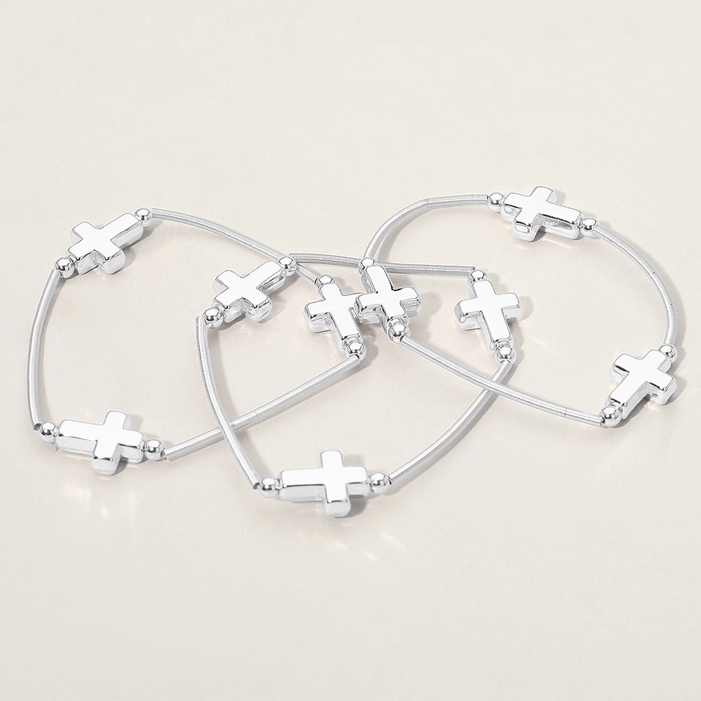 3PCS - Metal Cross Station Stretch Multi Layered Bracelets