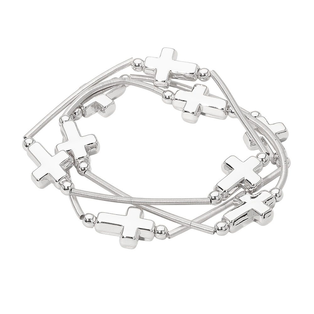 Details • Size : 1.25" H • Stretchable • A stylish multi-strand bracelet set featuring sleek cross charms arranged along flexible bands for an easy, layered look. Lightweight and versatile, it adds modern flair to casual or dressed-up outfits, making it a meaningful accessory that pairs effortlessly with any personal style. • Lead and Nickel Compliant