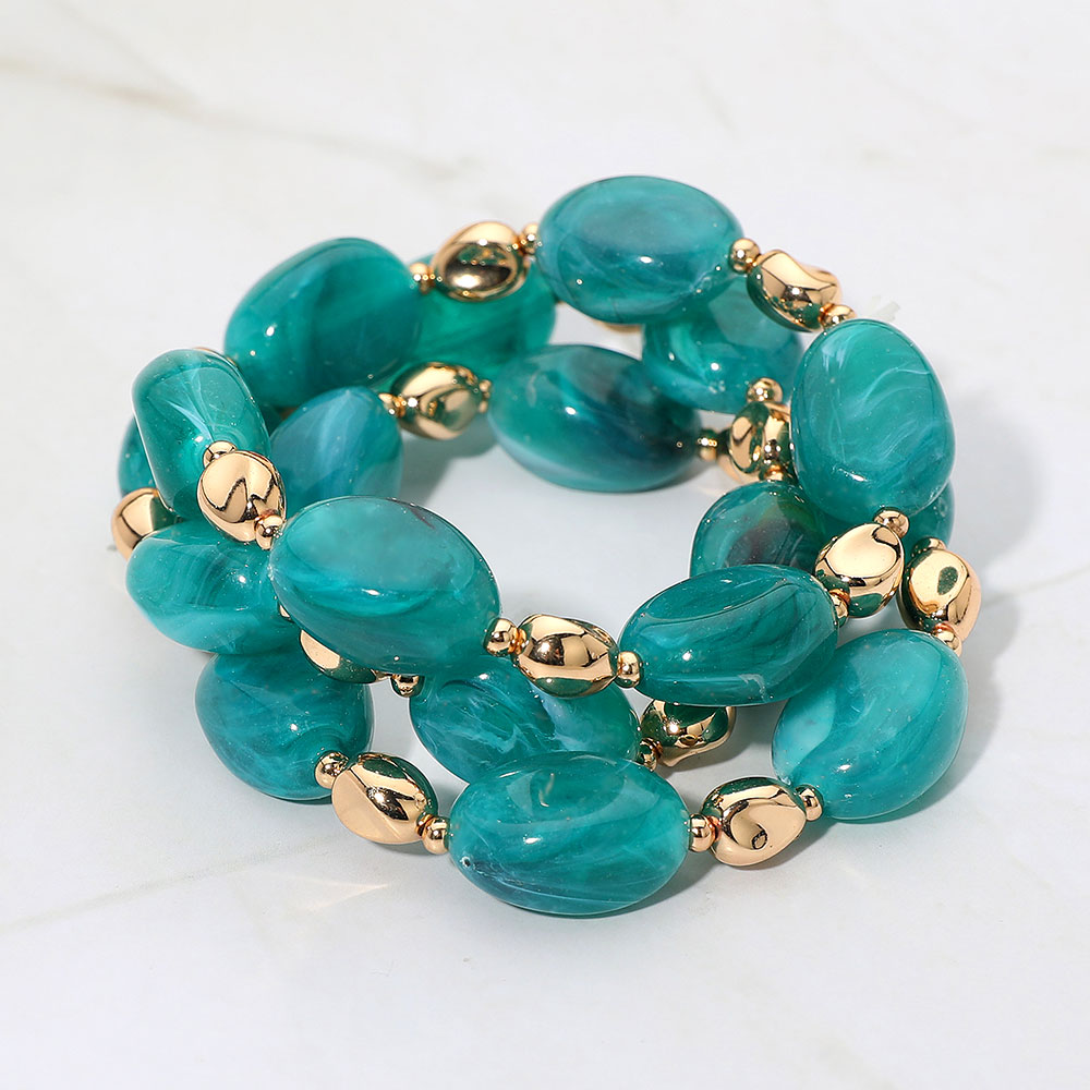 • This stretch bracelet showcases smooth oval beads arranged in a stacked, multi-row style for a bold yet refined look. Its sculpted shapes and polished accents create a striking accessory that adds effortless elegance to both everyday and elevated outfits.