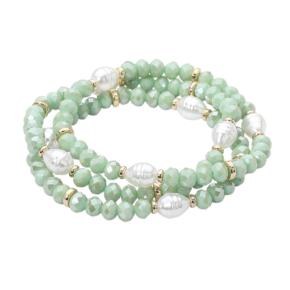 3PCS - Pearl Faceted Beaded Stretch Multi Layered Bracelets