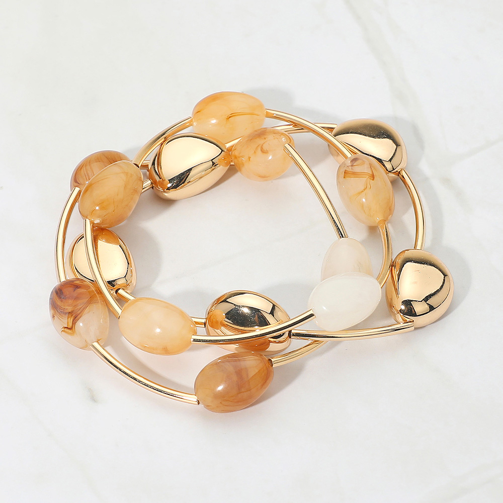 3PCS - Resin Metal Pebble Wire Beaded Stretch Multi Layered Bracelets 3PCS - Resin Metal Pebble Wire Beaded Stretch Multi Layered Bracelets 3PCS - Resin Metal Pebble Wire Beaded Stretch Multi Layered Bracelets