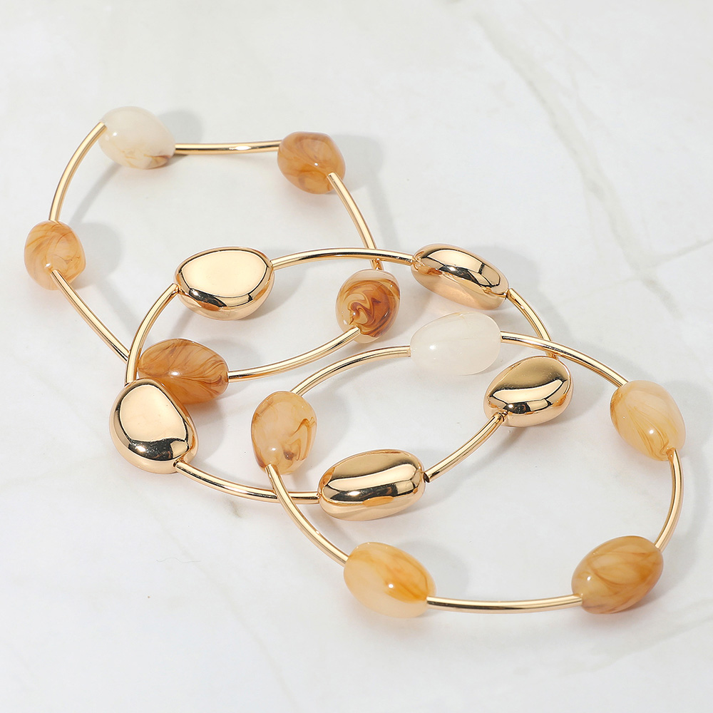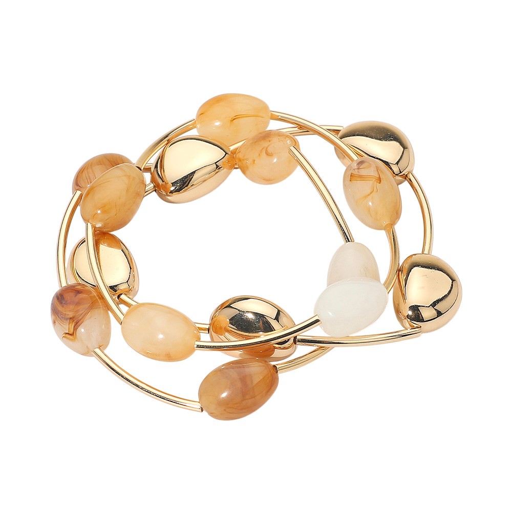 3PCS - Resin Metal Pebble Wire Beaded Stretch Multi Layered Bracelets