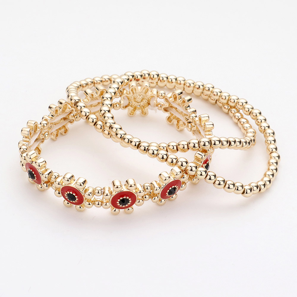 3PCS - Rhinestone Enamel Floral Stretch Layered Bracelets