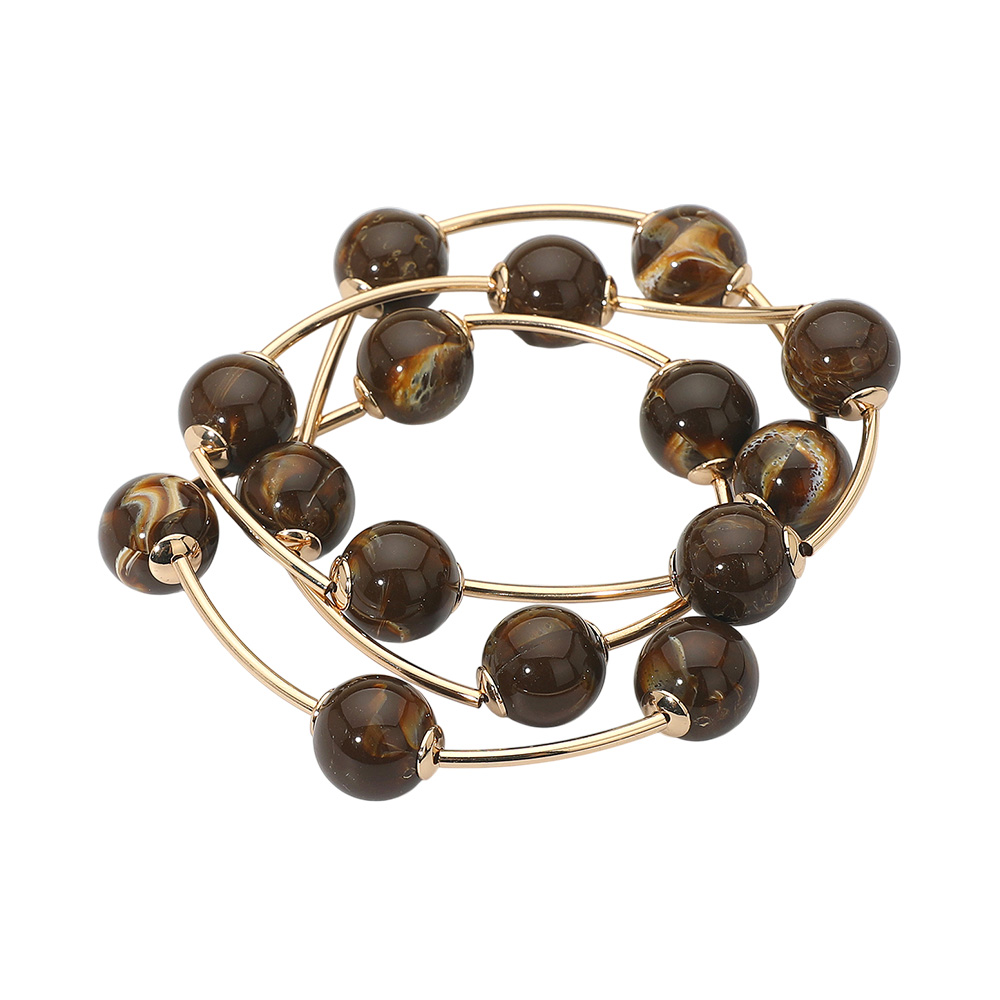 3PCS - Round Ball Wire Beaded Stretch Multi Layered Bracelets
