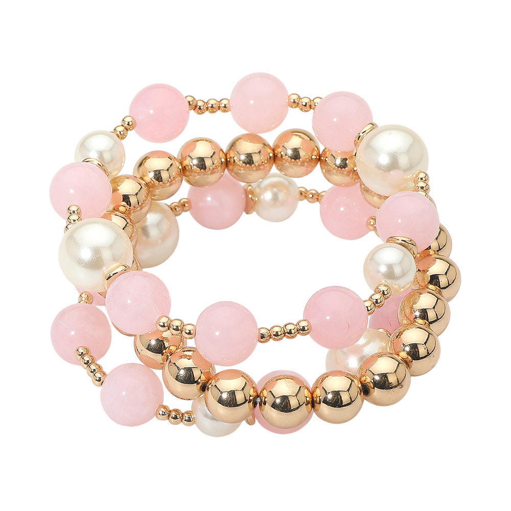 3PCS - Round Pearl Mixed Beaded Stretch Multi Layered Bracelets 3PCS - Round Pearl Mixed Beaded Stretch Multi Layered Bracelets 3PCS - Round Pearl Mixed Beaded Stretch Multi Layered Bracelets