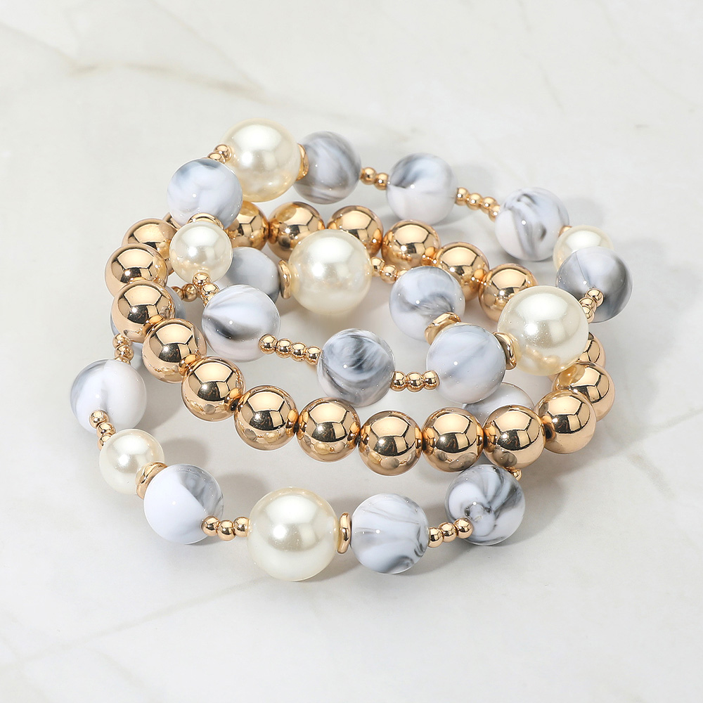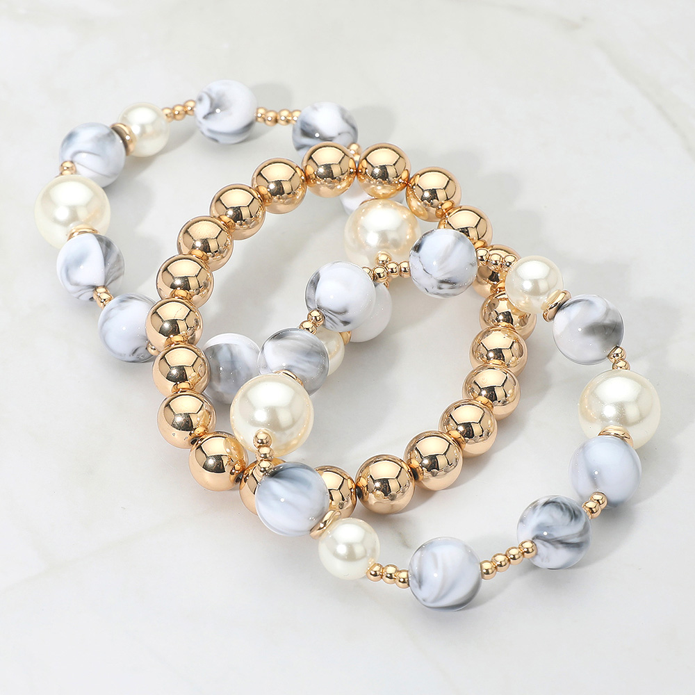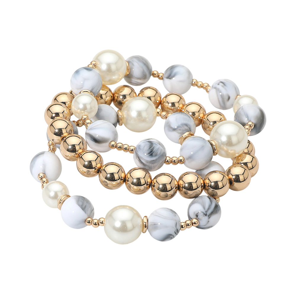 3PCS - Round Pearl Mixed Beaded Stretch Multi Layered Bracelets 3PCS - Round Pearl Mixed Beaded Stretch Multi Layered Bracelets 3PCS - Round Pearl Mixed Beaded Stretch Multi Layered Bracelets