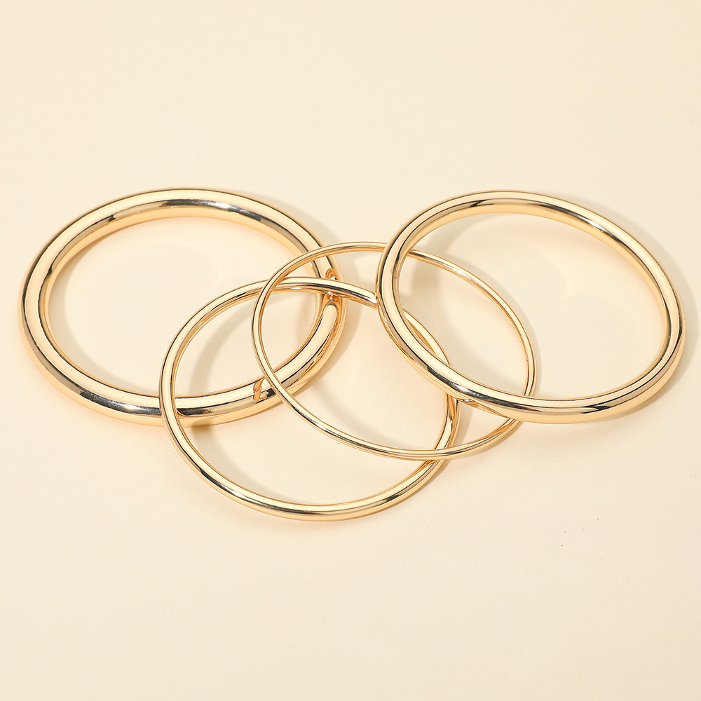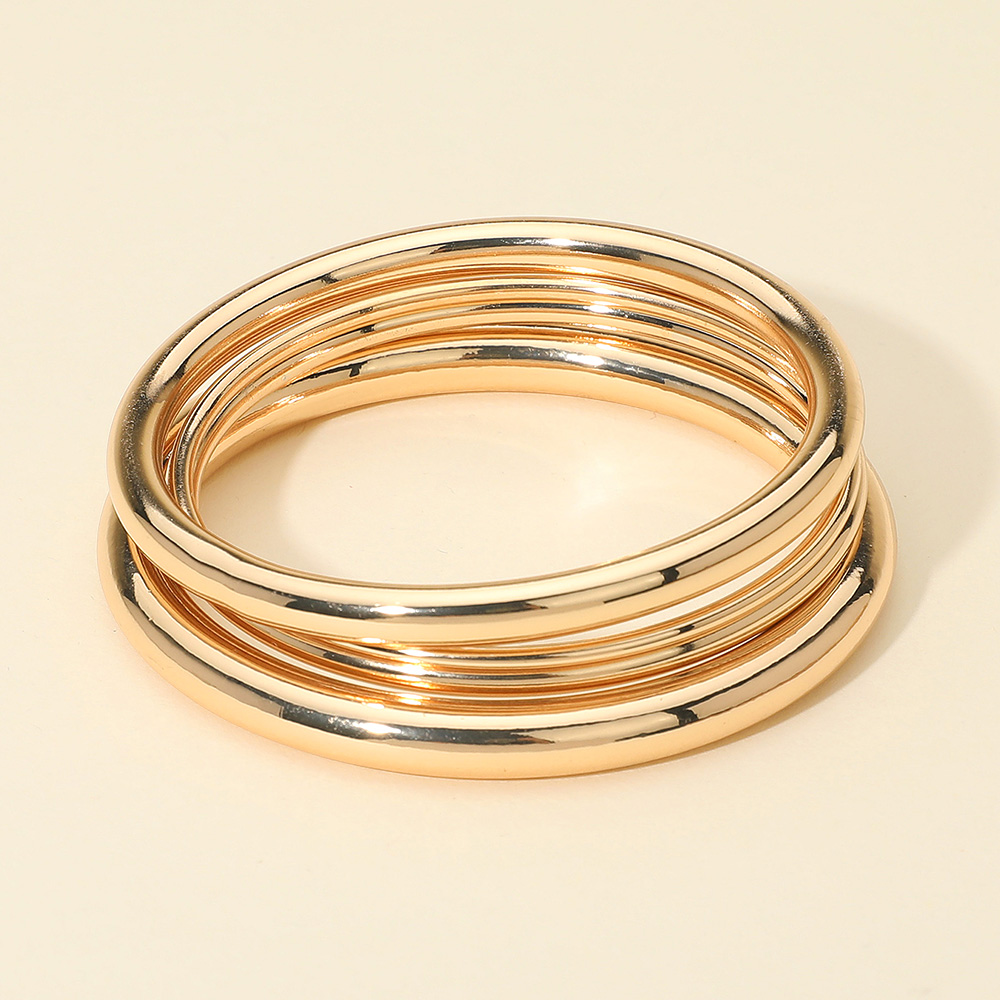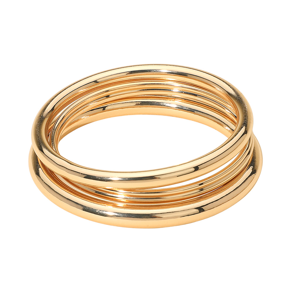 Details • Size : 0.8" H, 2.6" D • Sleek stacked bangle bracelet set featuring smooth polished bands for a clean, modern look. A versatile accessory that adds a refined touch to both everyday and elevated outfits, perfect for effortless styling. • Lead and Nickel Compliant