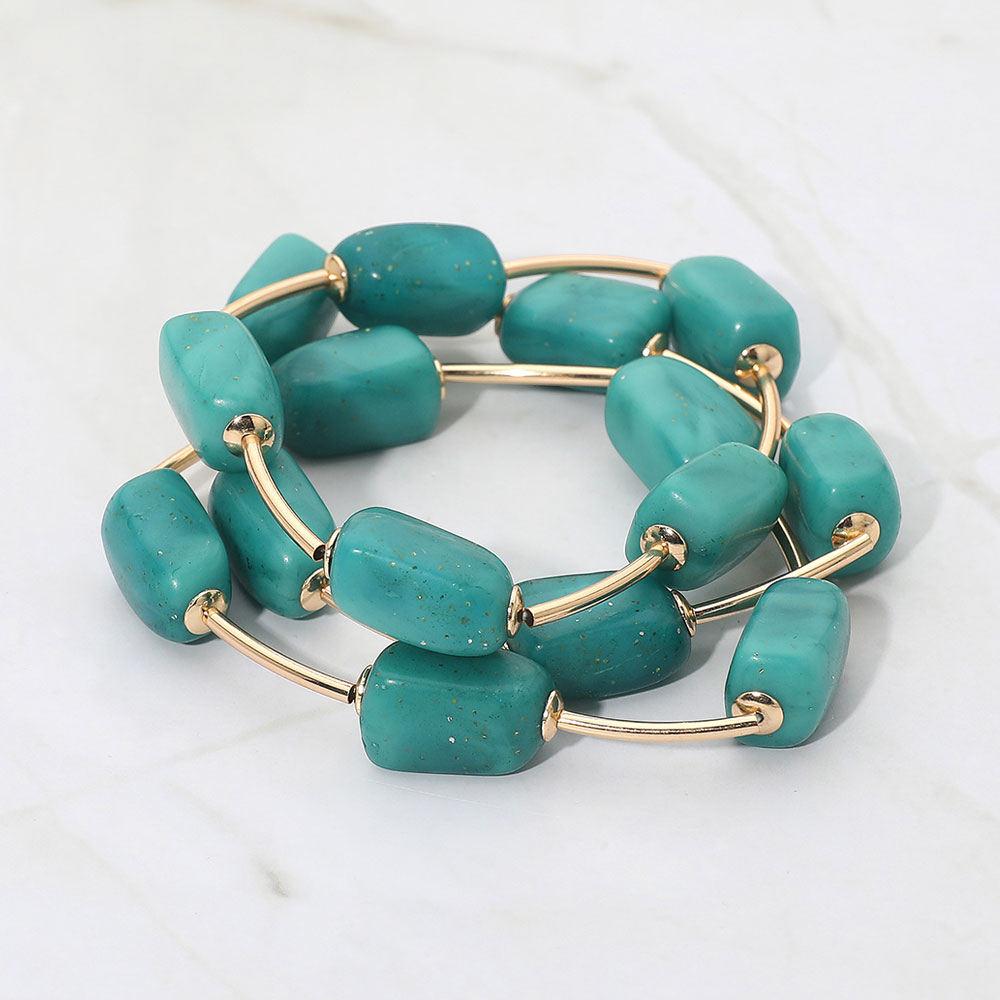 3PCS - Speckled Resin Pebble Metal Bar Beaded Stretch Multi Layered Bracelets