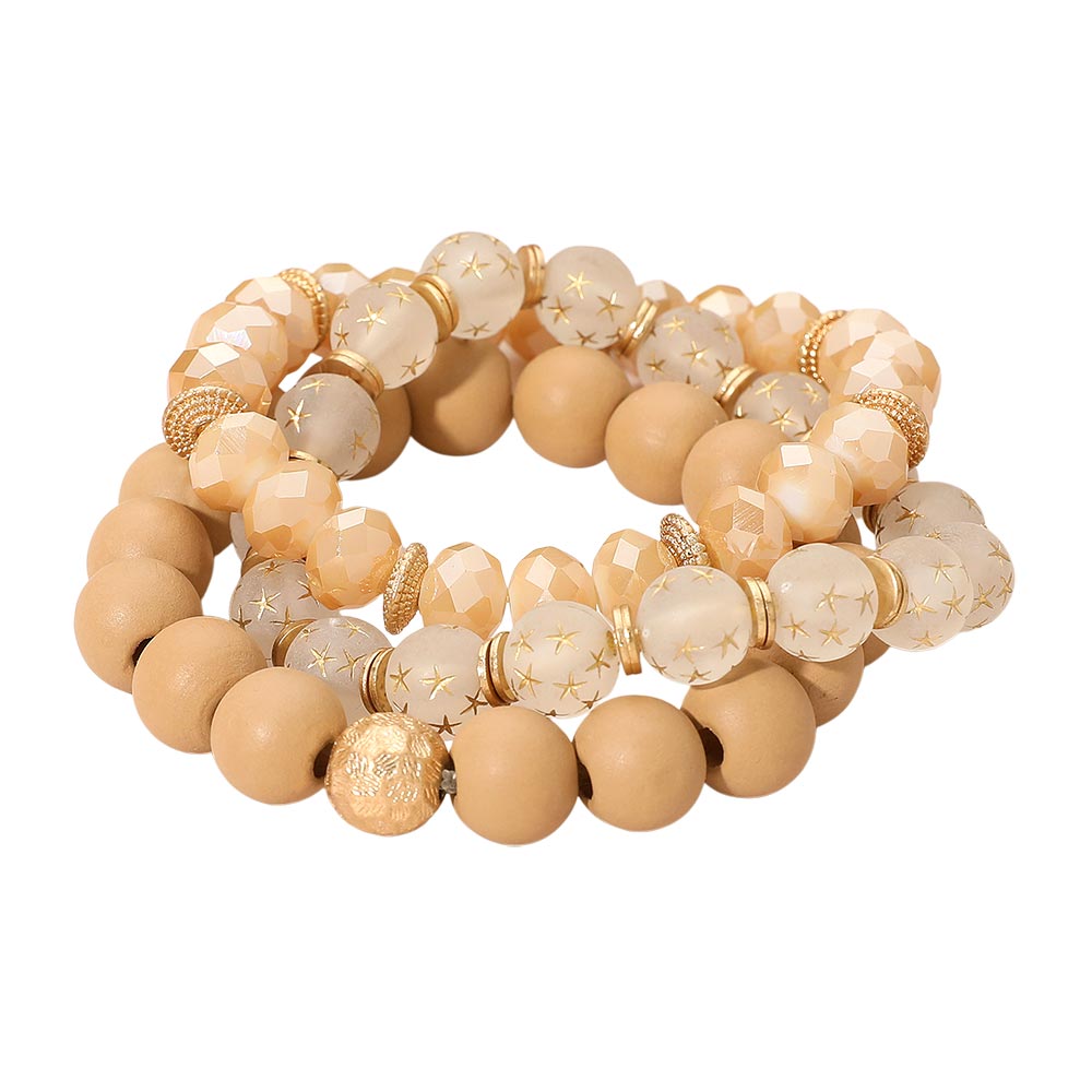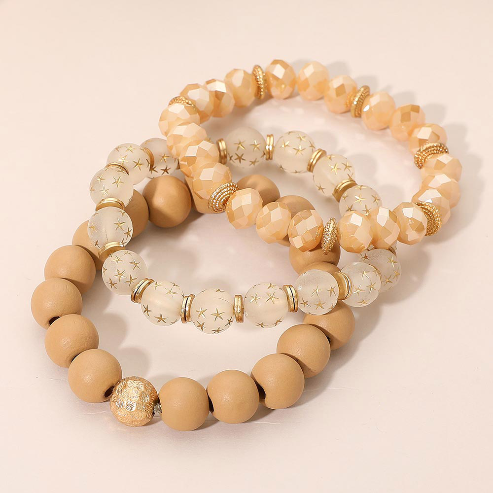 3PCS - Stackable Wooden Faceted Beaded Stretch Multi Layered Bracelets