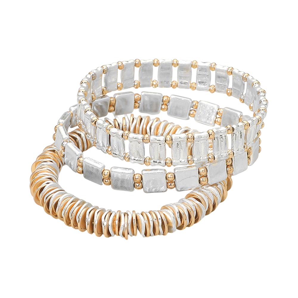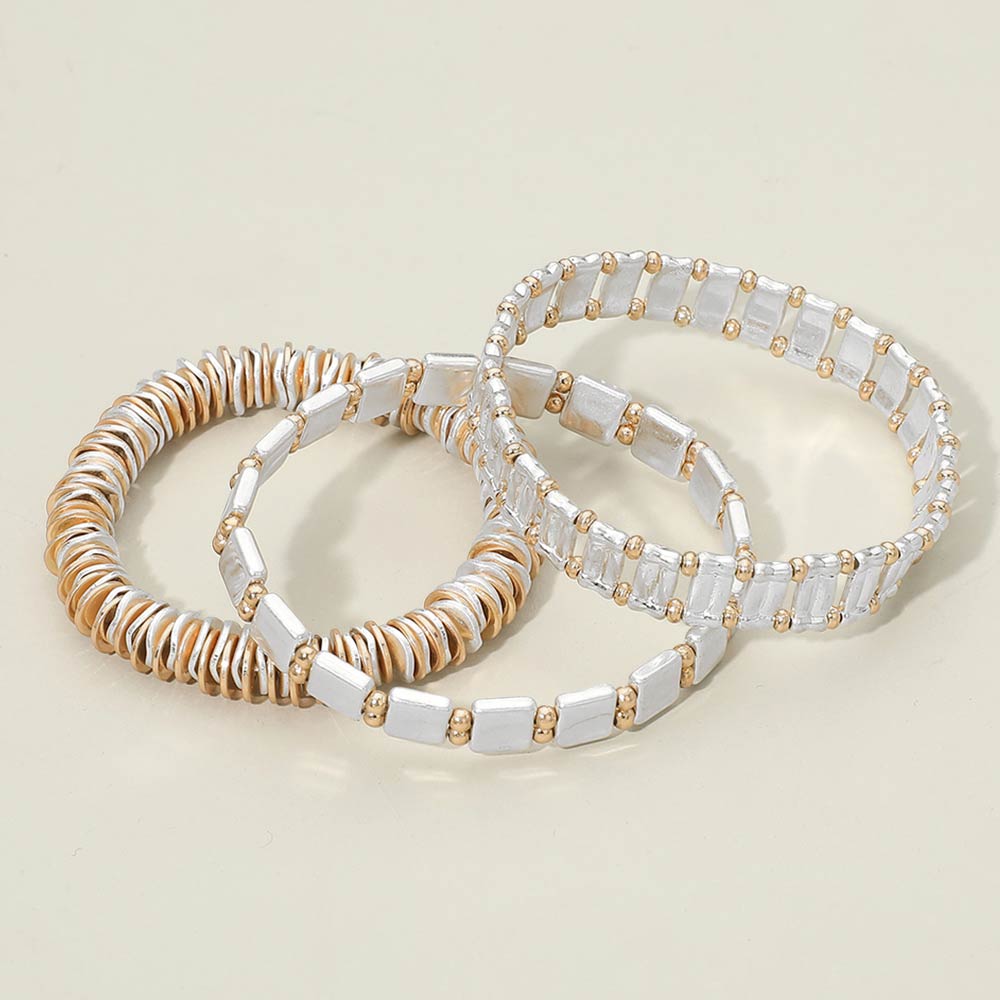 3PCS - Two Tone Metal Various Beaded Stretch Multi Layered Bracelets 3PCS - Two Tone Metal Various Beaded Stretch Multi Layered Bracelets 3PCS - Two Tone Metal Various Beaded Stretch Multi Layered Bracelets