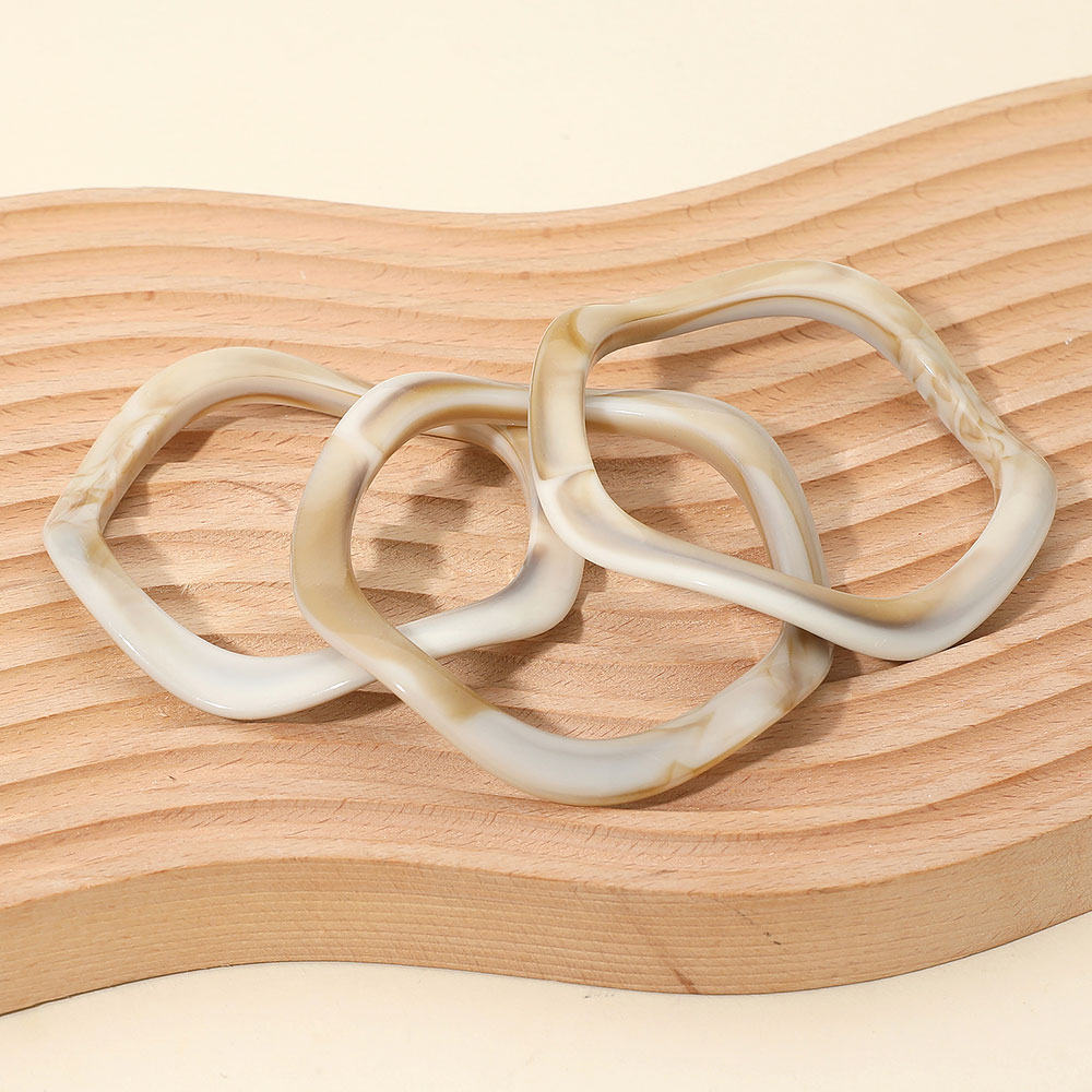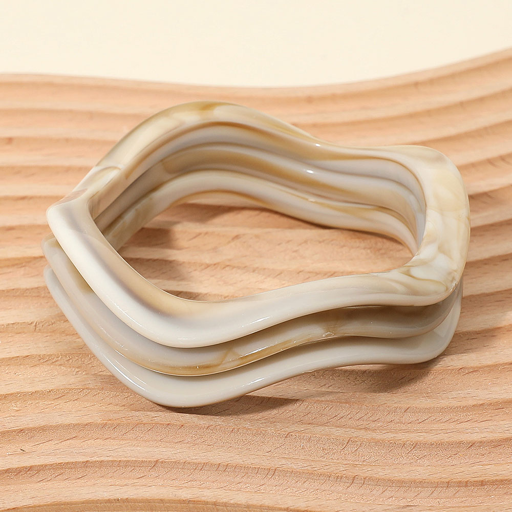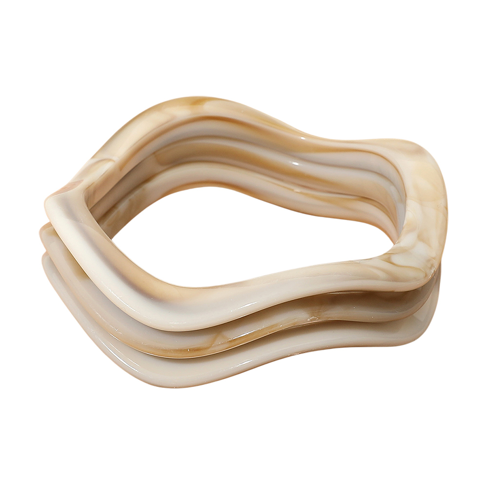 Details • Size : 1" H, 2.5" D • Add a bold twist to your look with this 3-piece resin bangle set featuring a unique wavy design. Lightweight and stackable, these bangles bring modern flair to casual or dressy outfits, making them the perfect fashion-forward accessory for everyday wear or gifting.