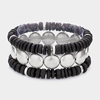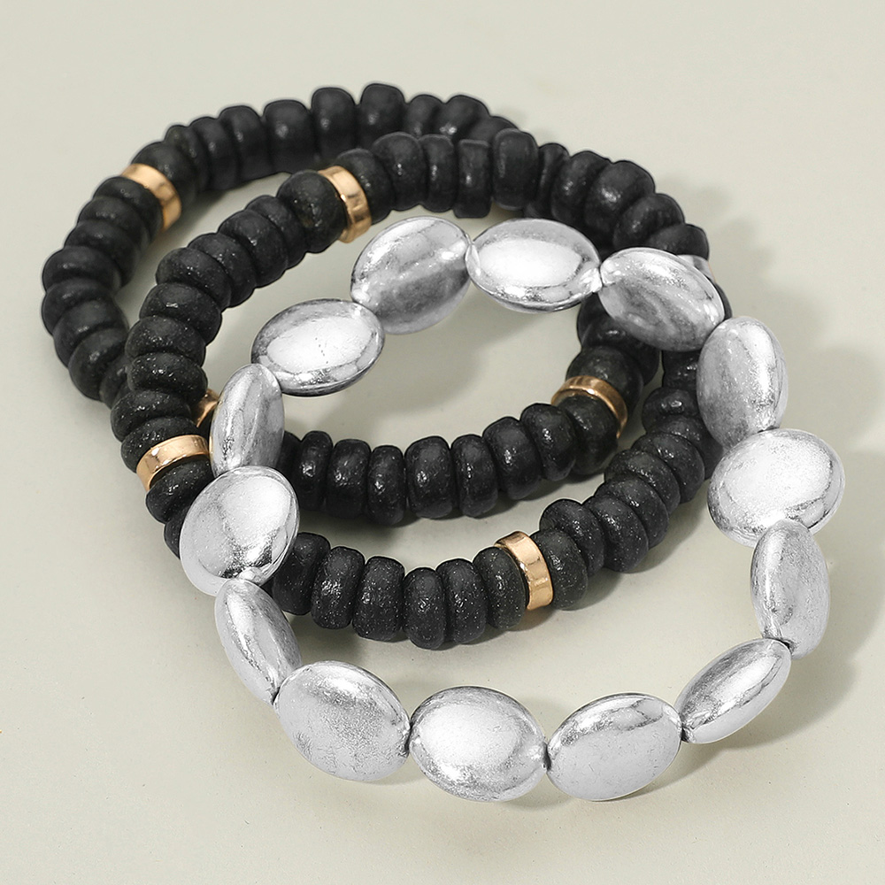 Details • Size : 1.25" H • Stretchable • This stretch bracelet set features a bold mix of smooth and textured beads paired with metallic accents, offering a versatile layered style. Perfect for stacking or wearing individually, these bracelets add a modern touch to casual outfits and elevate your look for any occasion. • Lead and Nickel Compliant